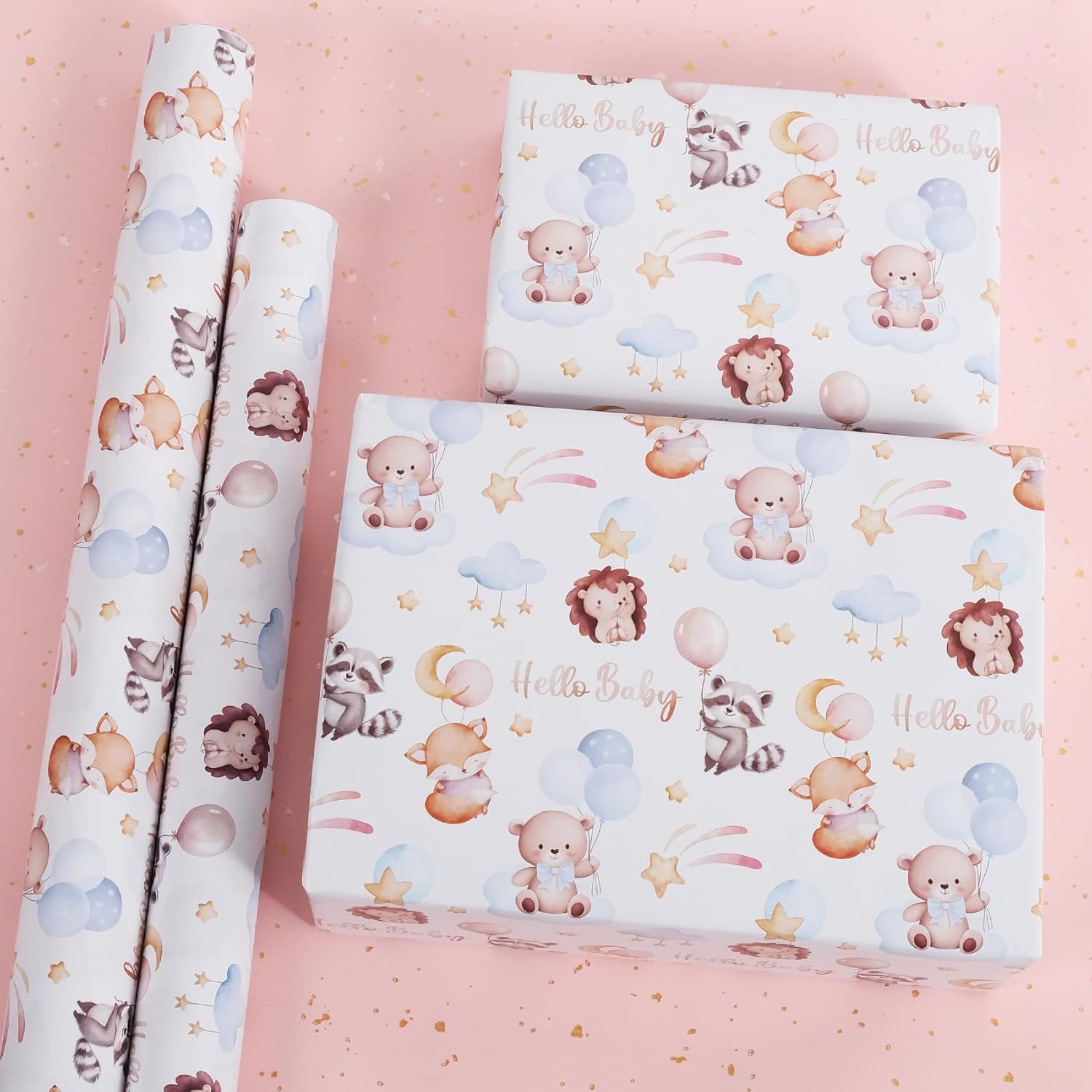 • Baby Shower Design:This wrapping paper with a cute bear, raccoon, fox, hedgehog design, making it perfect for any baby shower celebration or birthday party for boys girls