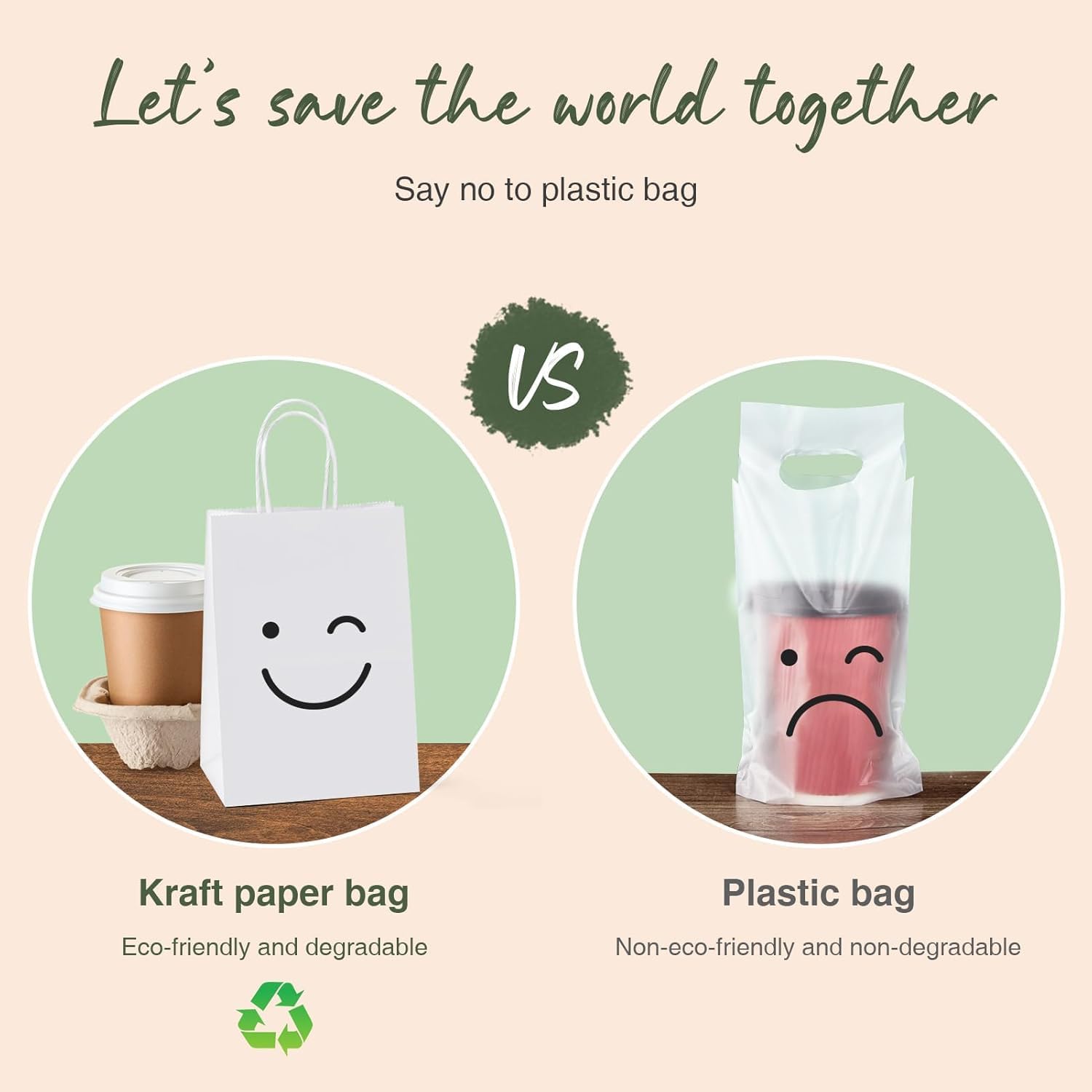 • Eco-friendly Paper Bags: GSSUSA white paper bags are made of recycled paper,FSC-compliant. They are biodegradable, recyclable, non-toxic, odorless, and pollution-free, can be reused for many times. More rustic, upscale and healthier look than plastic bags,and a great alternative to plastic bags.