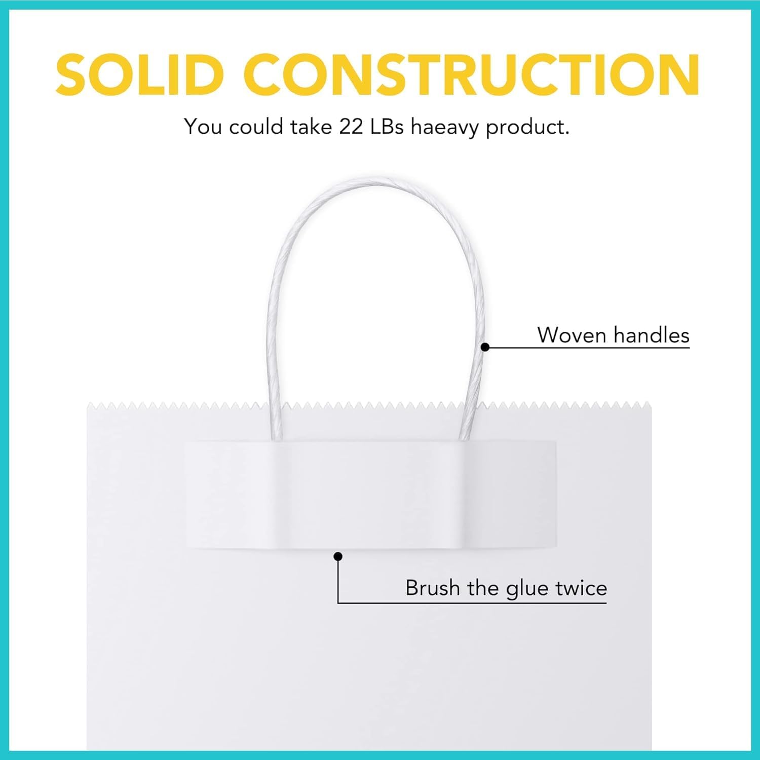 GSSUSA 16x6x12 Inches Large Paper Bags with Handles, 6000 Pack White Paper Gift Bag, Recyclable Kraft Paper Shopping Bags for Small Business, Party Favor, Craft Bag for Boutique
