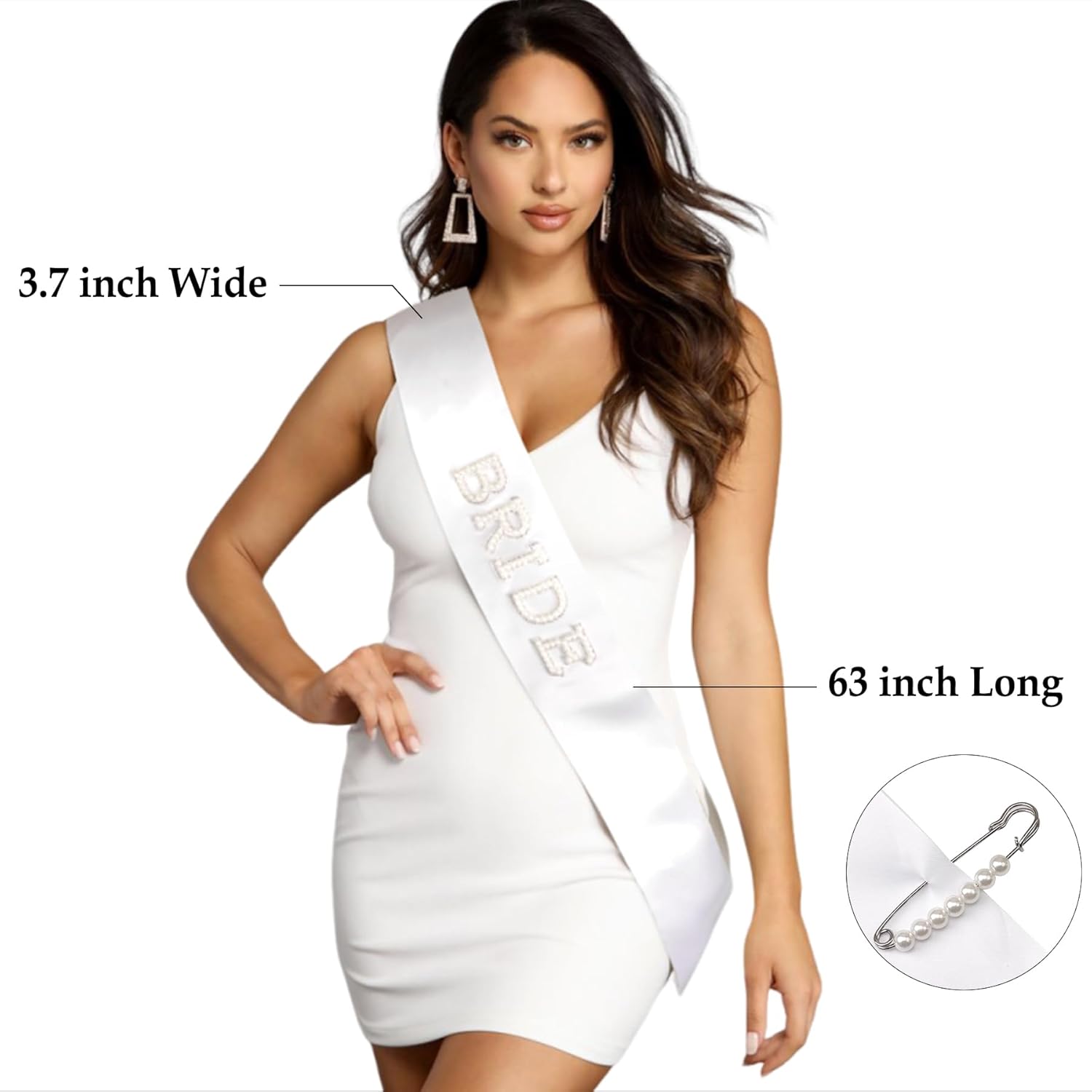 • Bridal shower decorations: Our white satin sash features an pearl "Bride" logo - it's the party addition you've been looking for + a guaranteed hit!