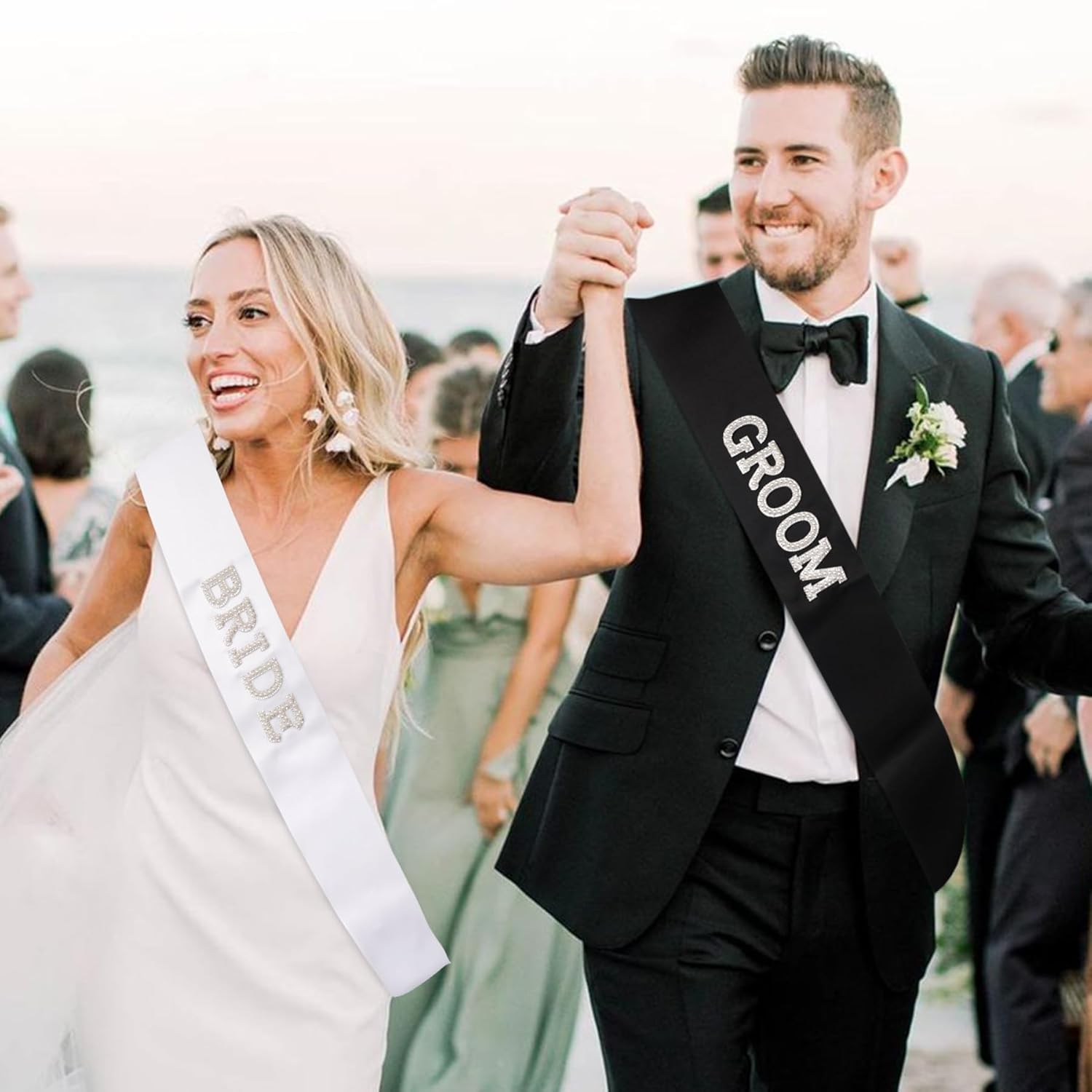 • For Every Bride: one size fits all! Our sash is 3.7" wide and 63" long total - perfect for each + every bride to be! It comes with a diamond safety pin that allows you to adjust the sash to your size.