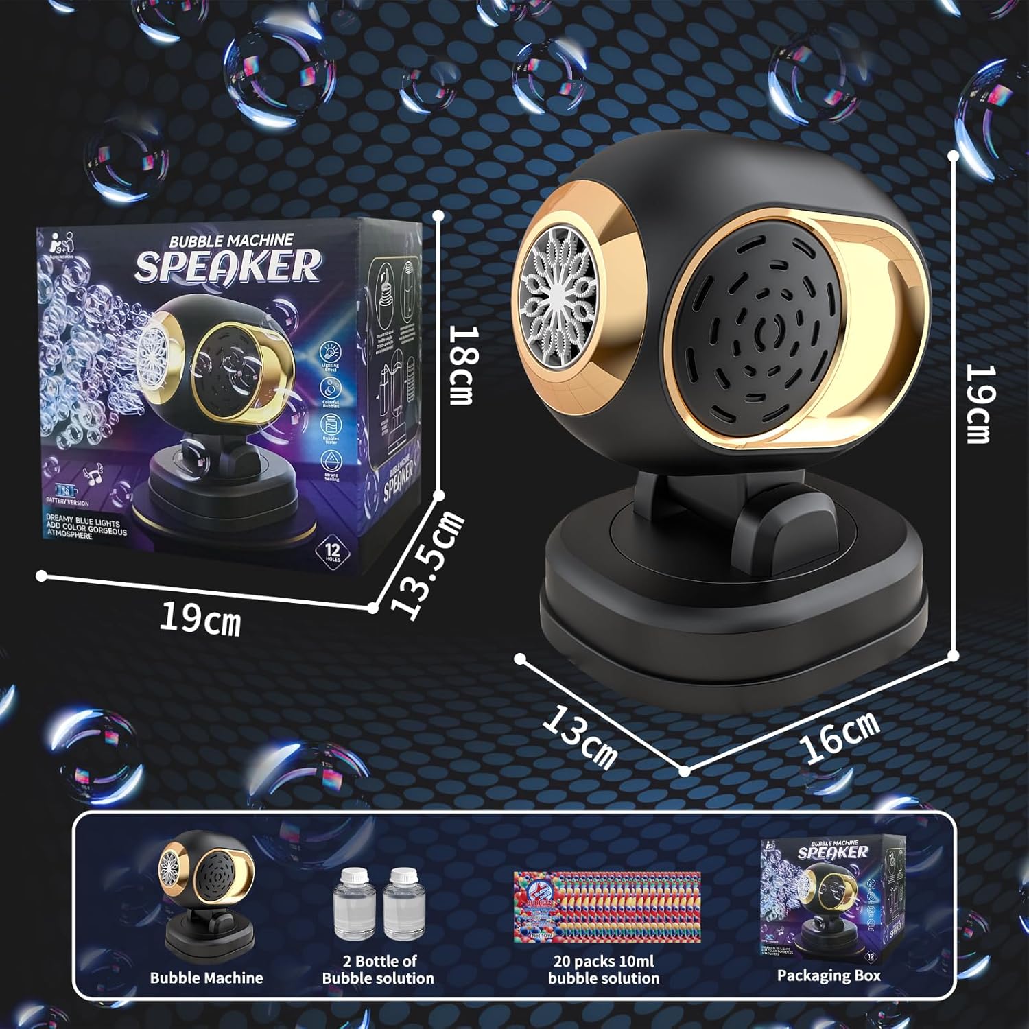 • BUBBLE MACHINE SET INCLUDES- Bubble Machine x 1, Bubble solution x 2bottle, Extra 20packs 10ml bubble solution(1 bottle bubbles solution=10ml solution + 50-100ml water),a small screwdriver x 1, Beautiful packaging box.
