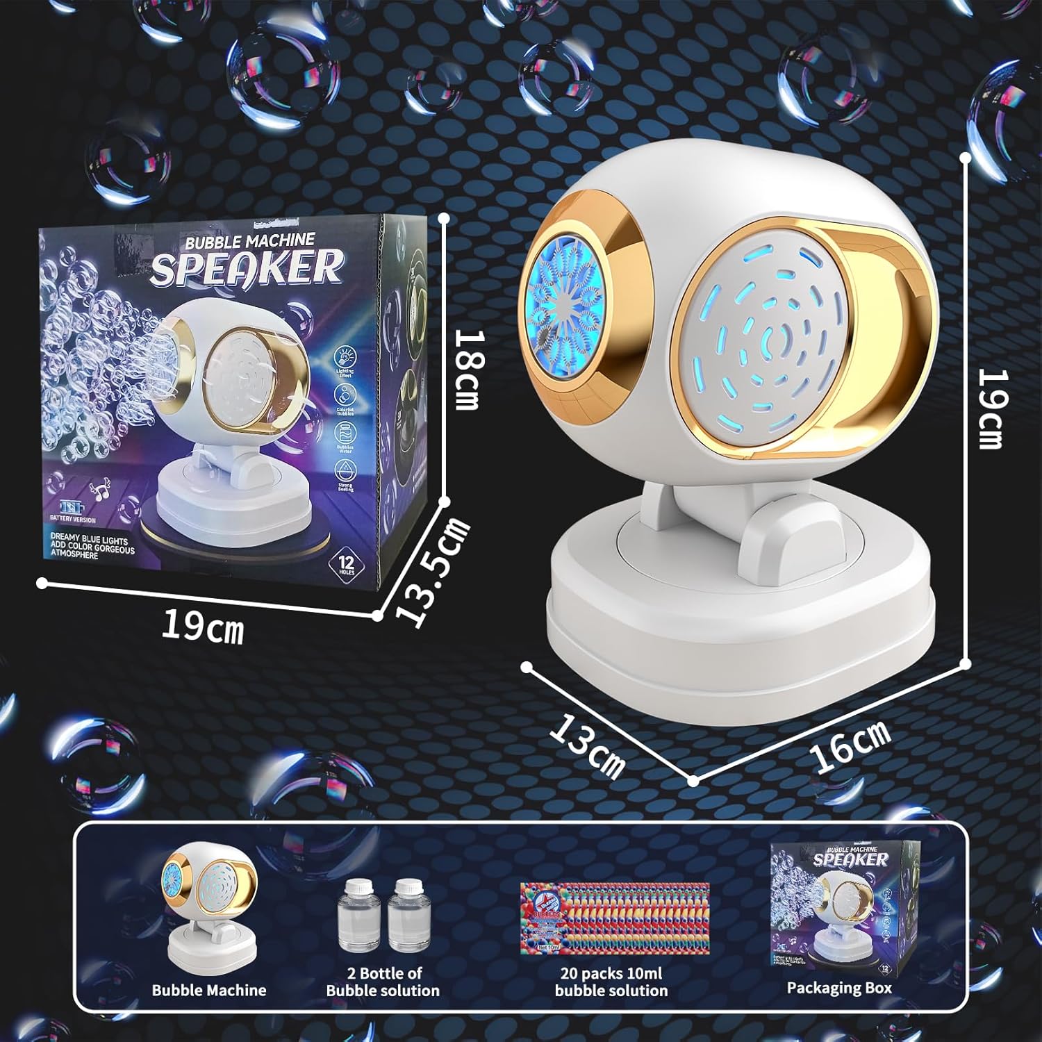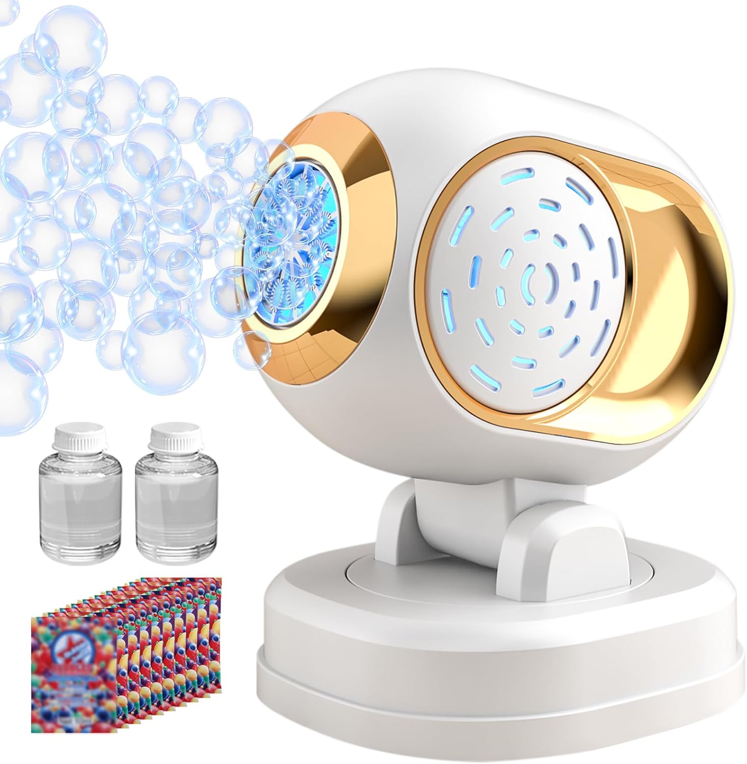 • BUBBLE MACHINE SET INCLUDES- Bubble Machine x 1, Bubble solution x 2bottle, Extra 20packs 10ml bubble solution(1 bottle bubbles solution=10ml solution + 50-100ml water),a small screwdriver x 1, Beautiful packaging box.