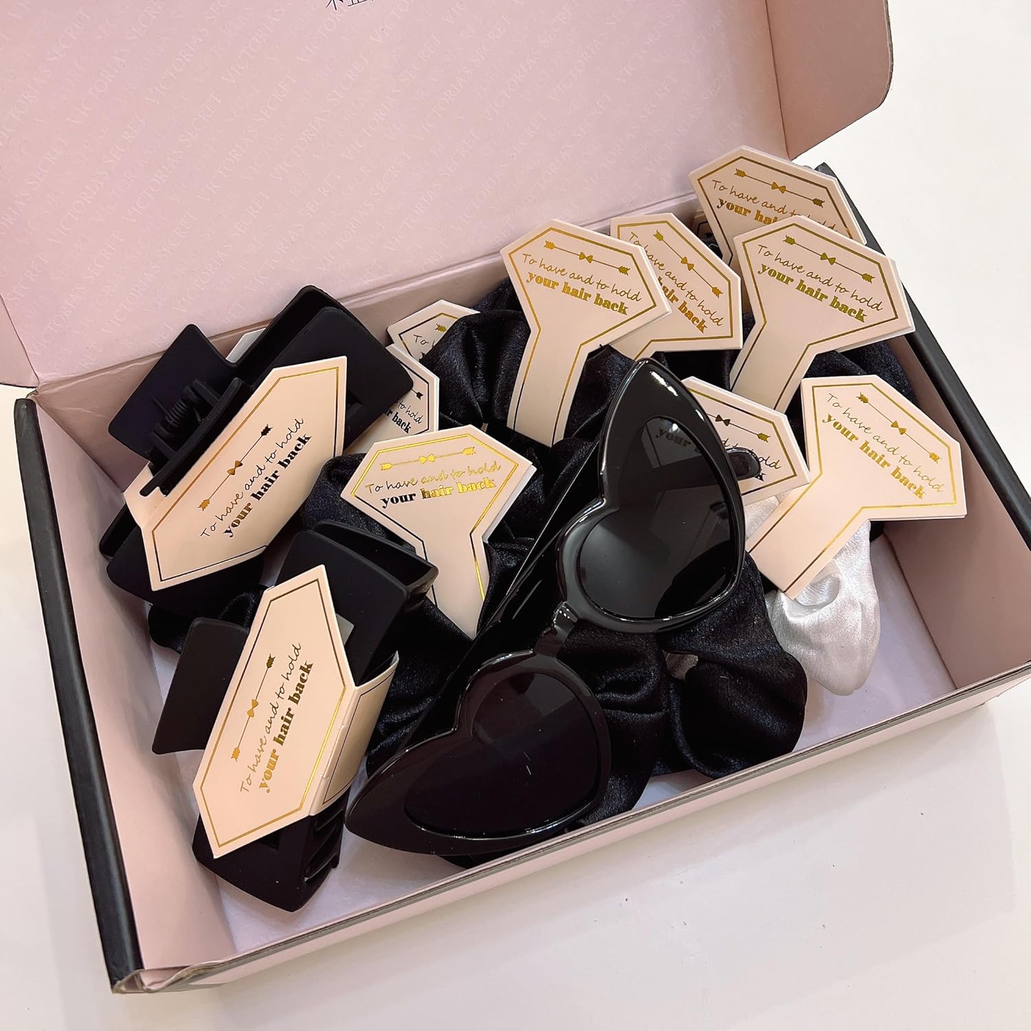 • Bridesmaid Proposal Gifts Sunglasses bulk pack includes 8pcs 4.1 inch hair Claws clips and 8pcs Bachelorette heart sunglasses and 8pcs Bridesmaid Scrunchies.1pcs for you and 7pcs for your friend, Perfect as bachelorette party favors sunglasses and bridesmaid sunglasses gifts!