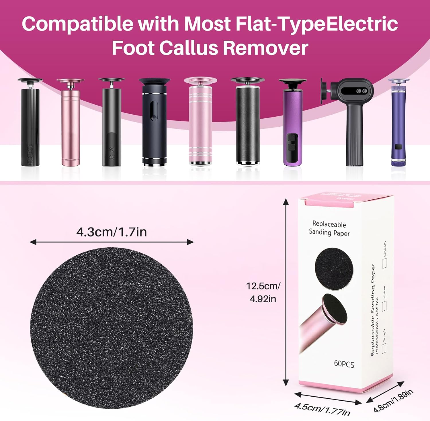 • 【Precision Fit Design】"Exclusively engineered for 1.69" electric foot smoothers, these exfoliating discs deliver seamless compatibility with most rotary foot care devices. The laser-cut edges ensure vibration-free operation for salon-grade precision."