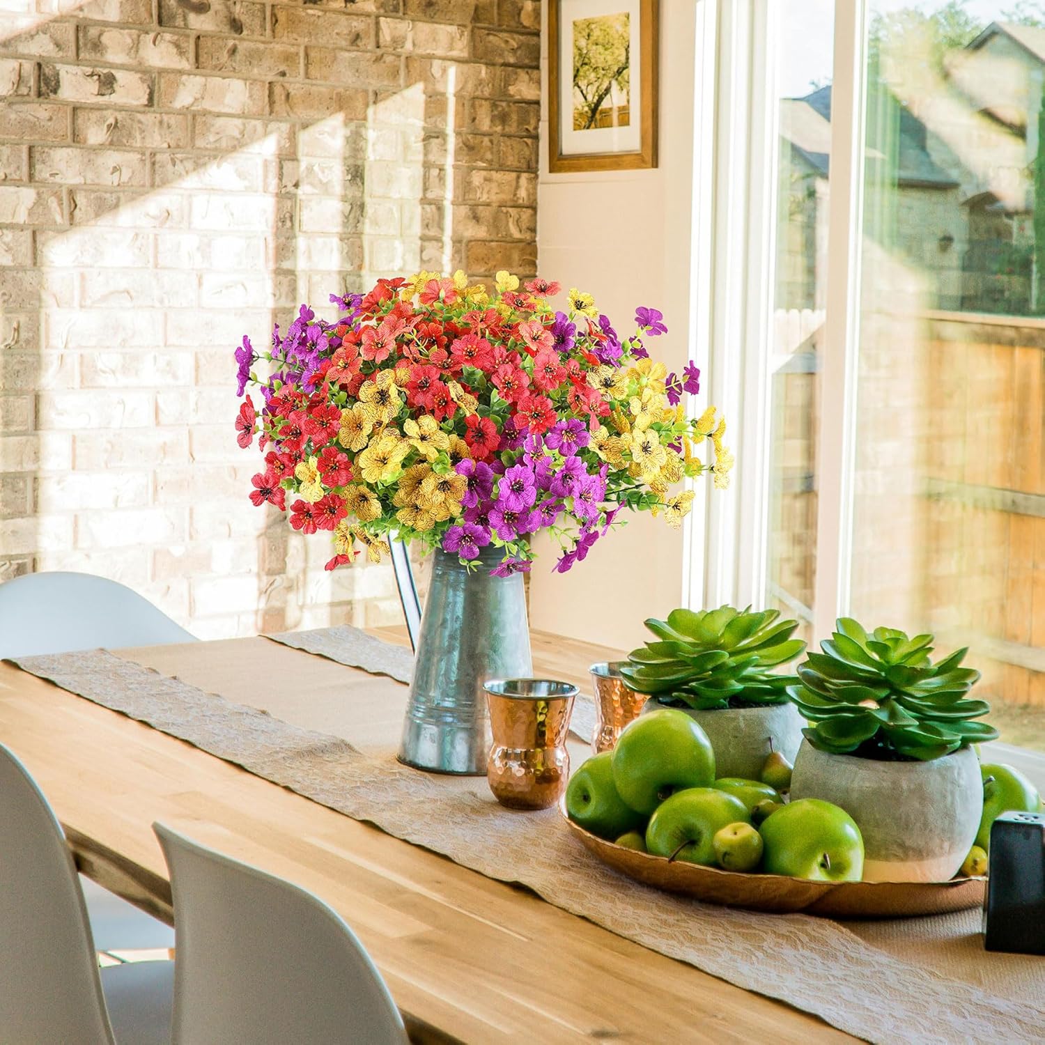 AmyHomie 16 Bundles Artificial Flowers for Outdoor Outside Spring Summer Decoration UV Resistant Faux Flowers No Fade Fake Plastic Plants Garden Porch Window Box Decorating