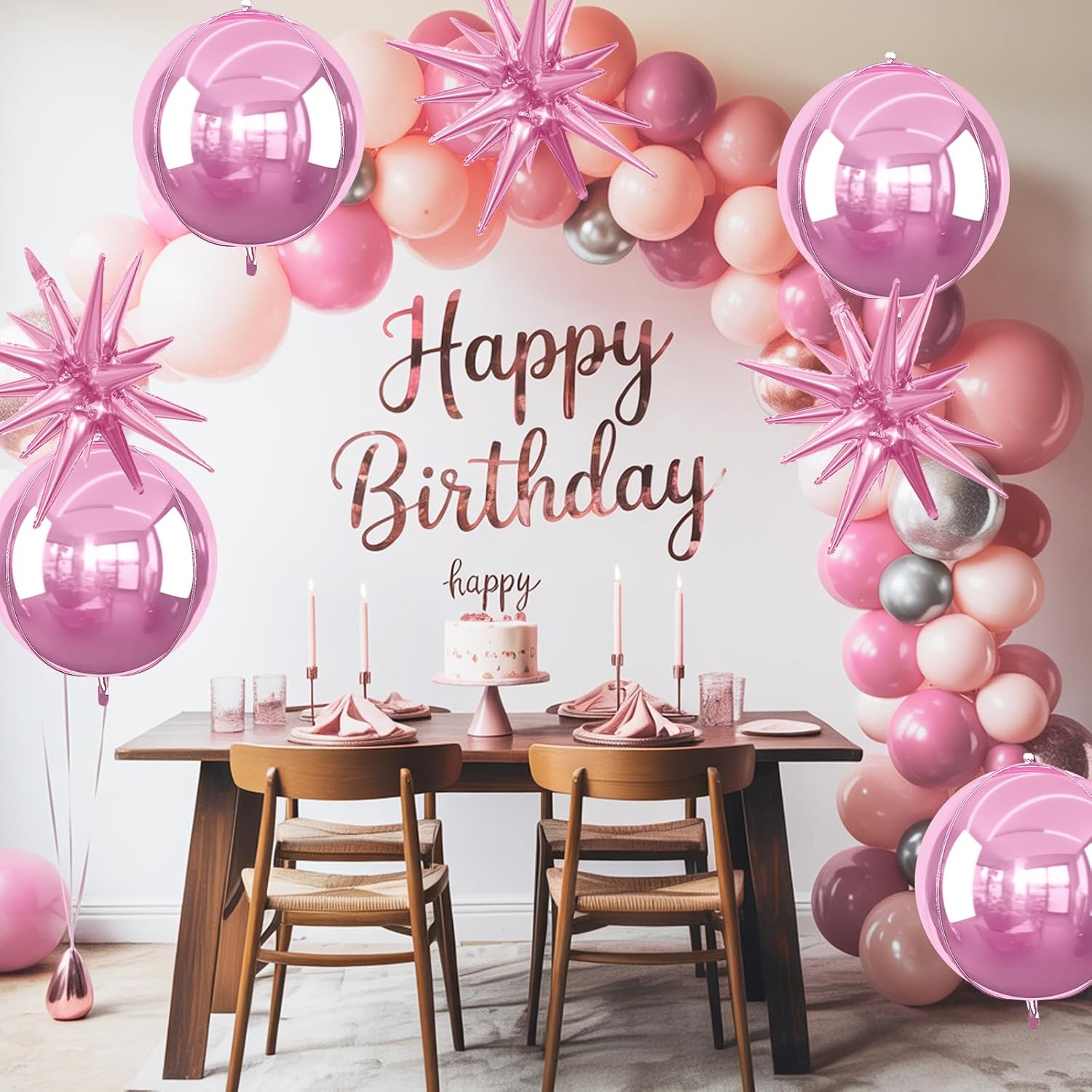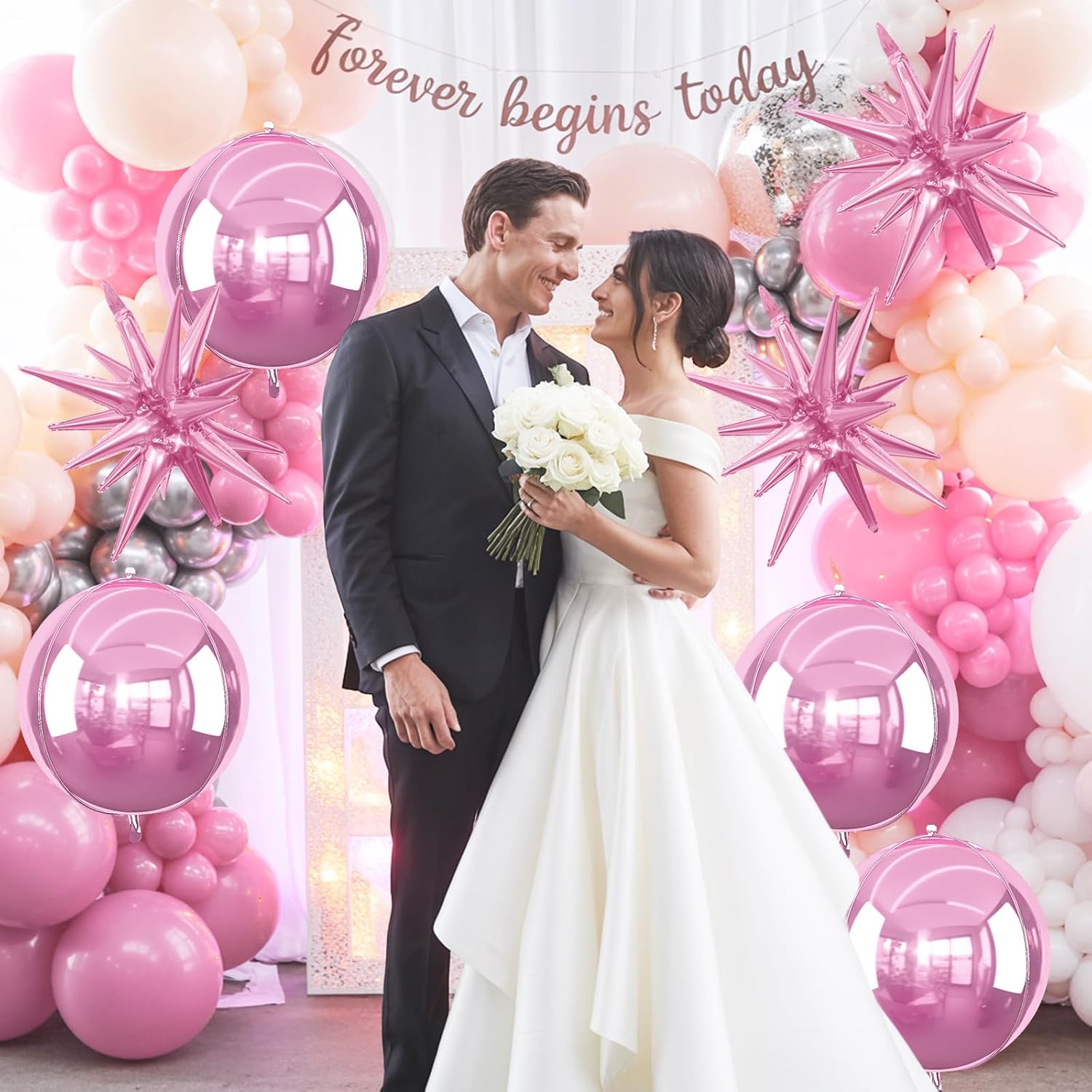 6Pcs Pink Foil Balloons,22Inch Light Pink 4D Round Ball Balloon and Explosion Star Balloon for Birthday Wedding Baby Shower Anniversary Decorations