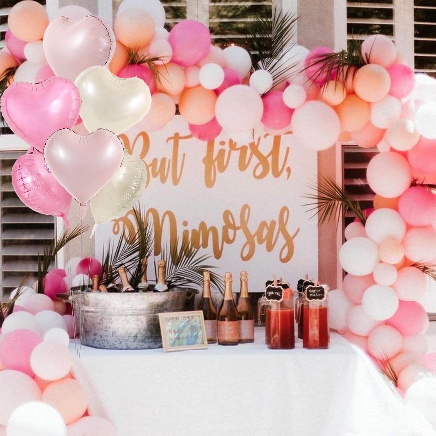 TONIFUL 15Pcs 18 Inch Heart Balloons Pastel Pink Cream White Pink Heart Shape Foil Mylar Balloons Decoration for Baby Shower Wedding Bridal Shower Anniversary Engagement Birthday Party Supplies