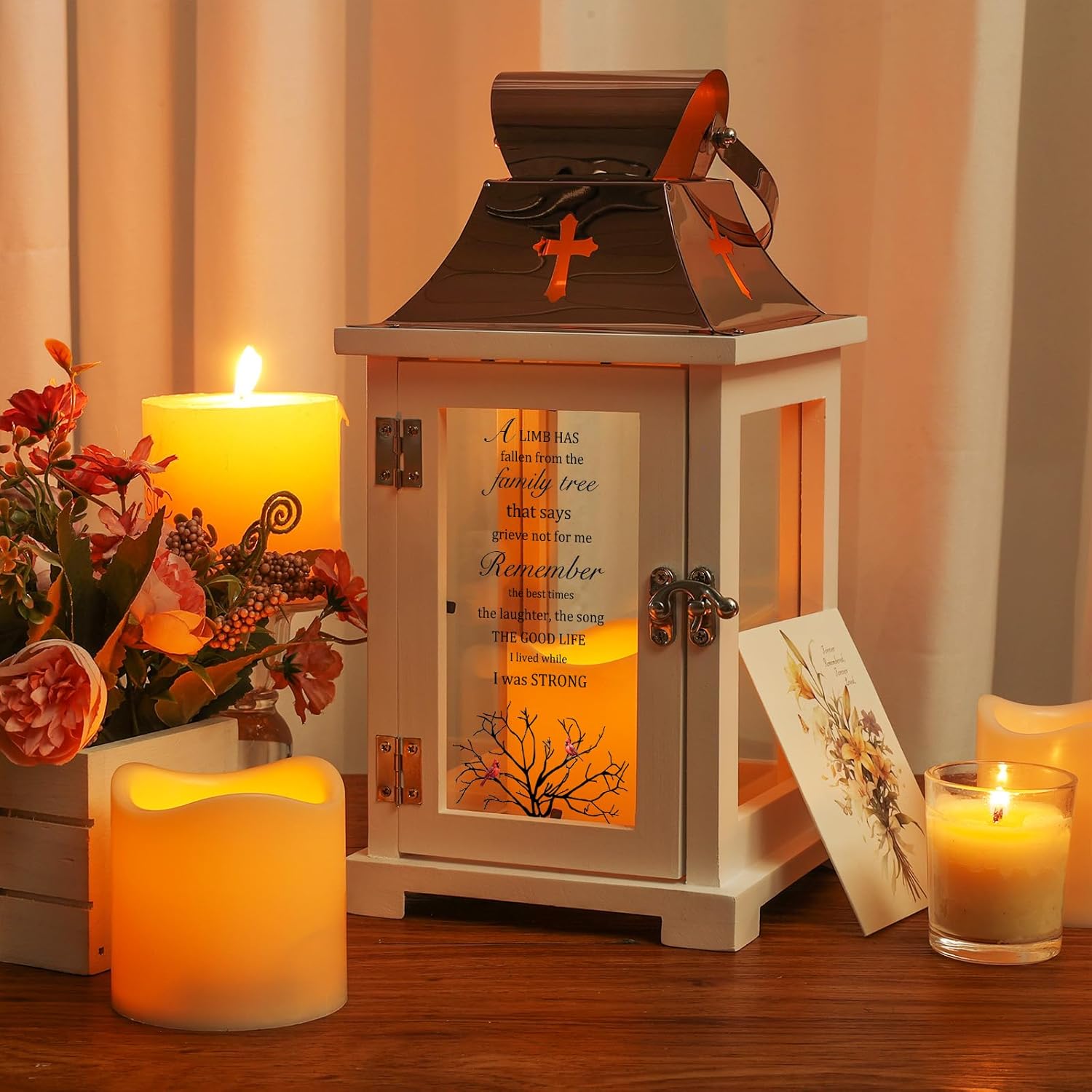Memorial Lantern, Sympathy Bereavement Gifts Ideas for Loss of Loved One Mother Father Sister Brother, Remembrance Funeral Gifts in Memory of Loved One with LED Candle