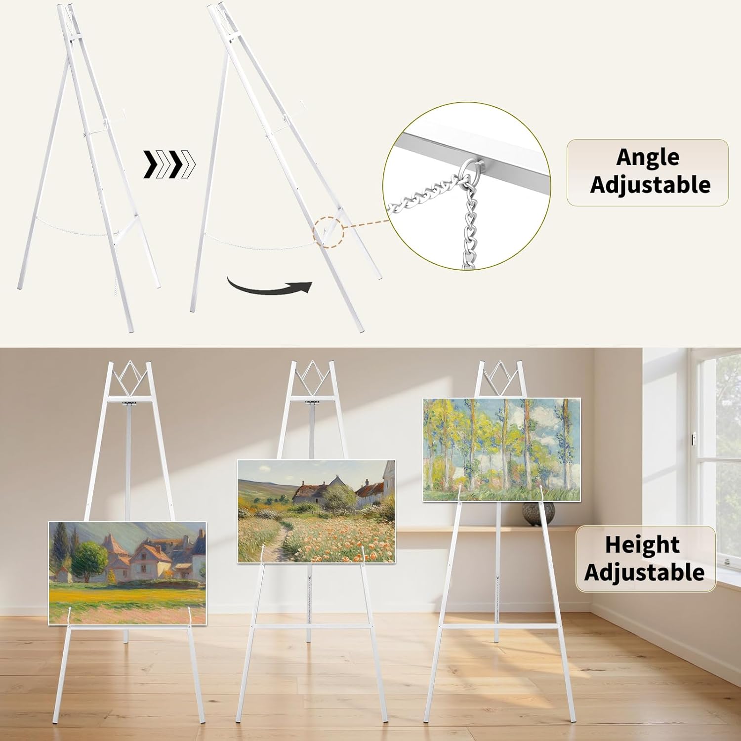 • 【CLEAN & ELEGANT DESIGN】Finished in a smooth white powder coating, this easel offers a bright, refined aesthetic that complements weddings, art galleries, and elegant gatherings without distracting from your display.