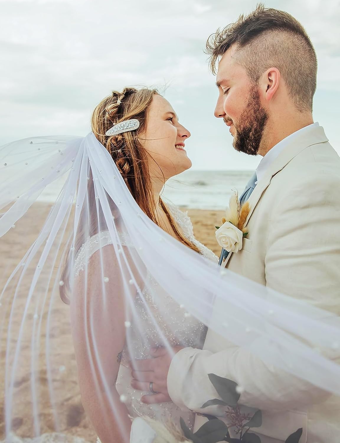 Lovasy Pearl Wedding Bridal Veil 1 Tier Long Veils with Metal Comb– Premium Wedding Accessories for Brides Bachelorette Party