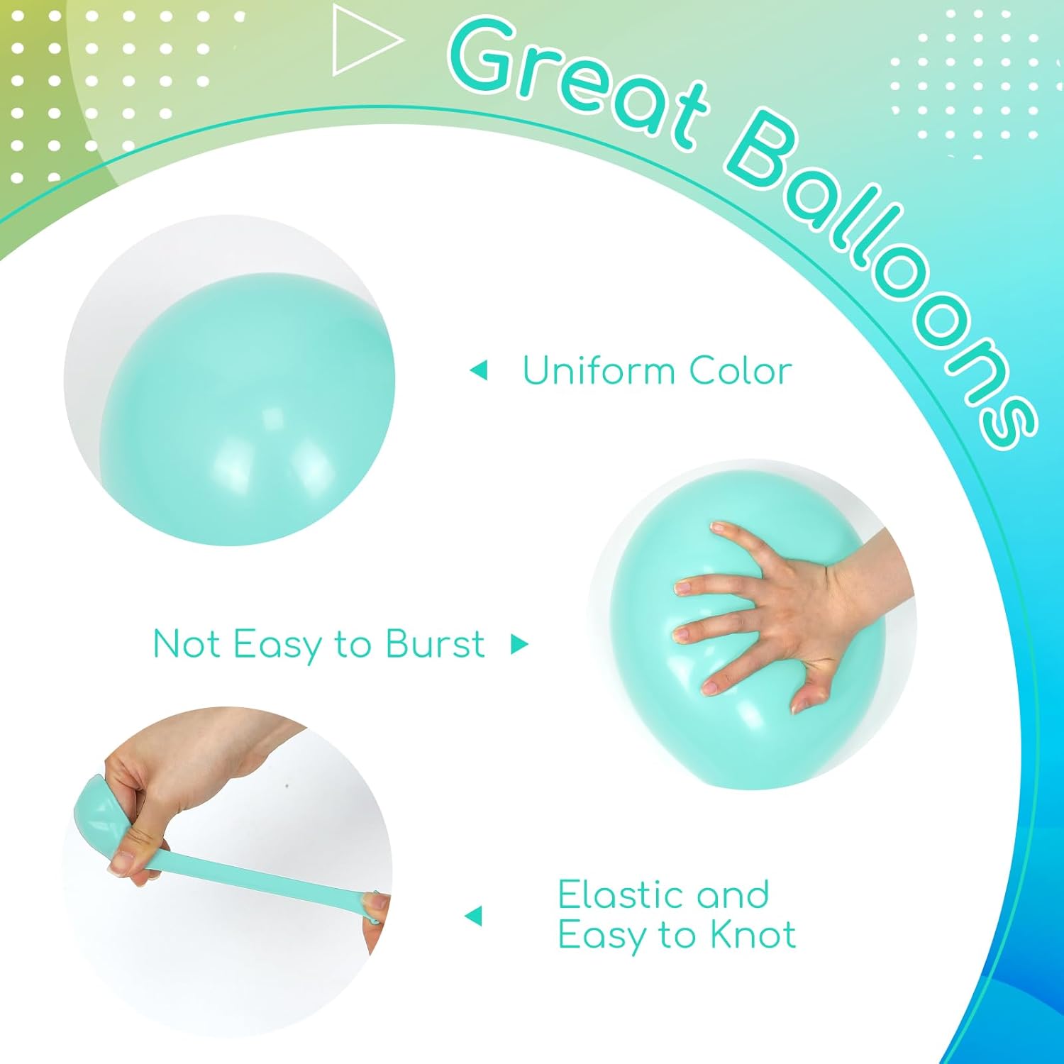 • Easy to Assemble: This green and blue balloons comes with ribbons and glue dots, making it quick and easy to create party decorations. Simply inflate the balloons and secure them in place with the glue dots. You'll have a beautiful balloon display ready in minutes, adding instant festive charm