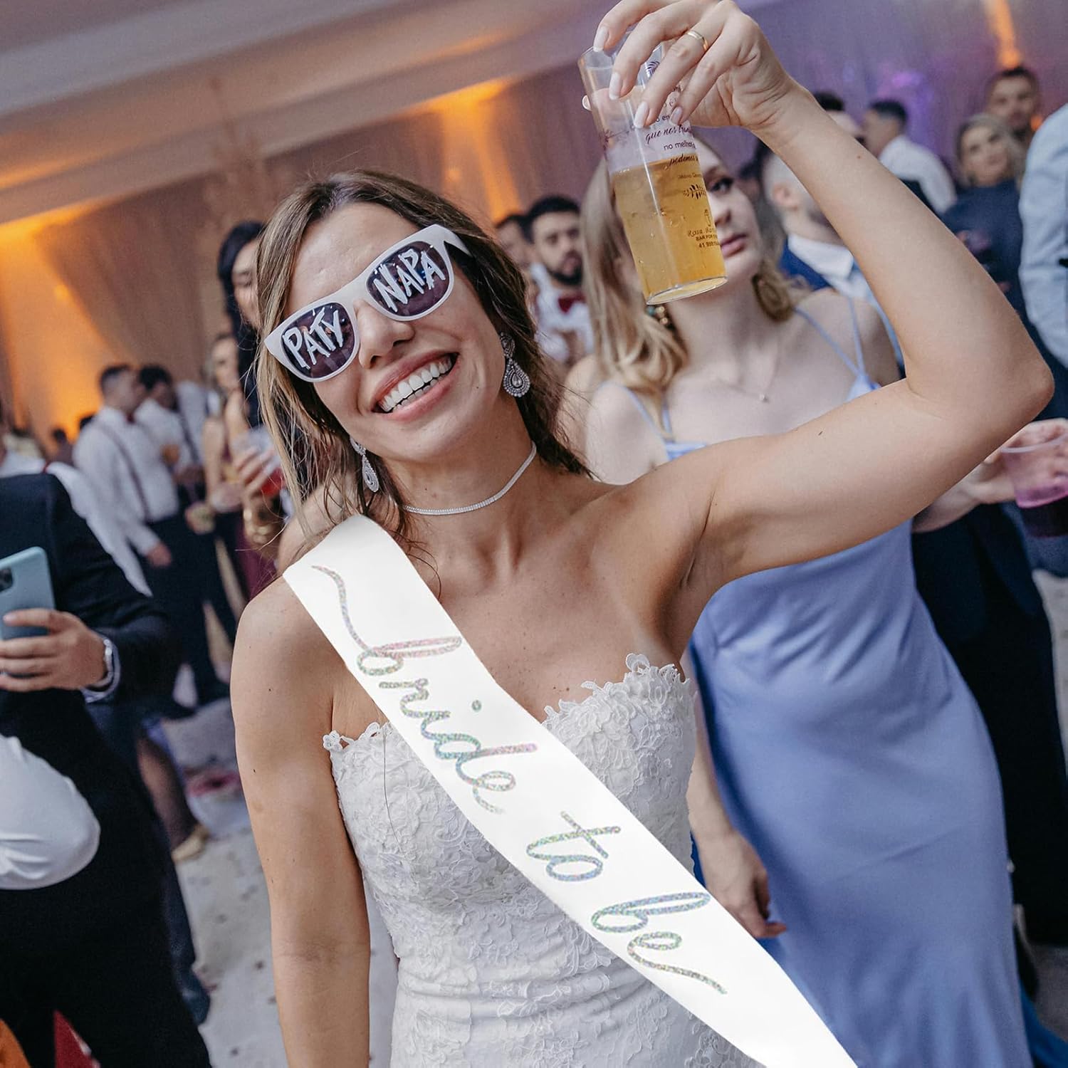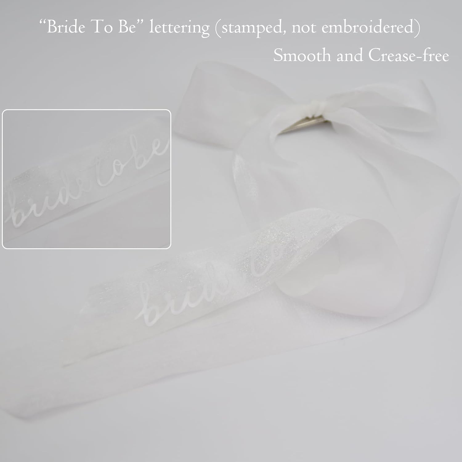 • Elegant White Satin Bride Sash: Made from soft satin with shimmering “Bride to Be” foil lettering, this 62" x 3.7" sash is one size fits most and adds elegant sparkle to any bridal look—perfect for showers, bachelorette parties, and weddings
