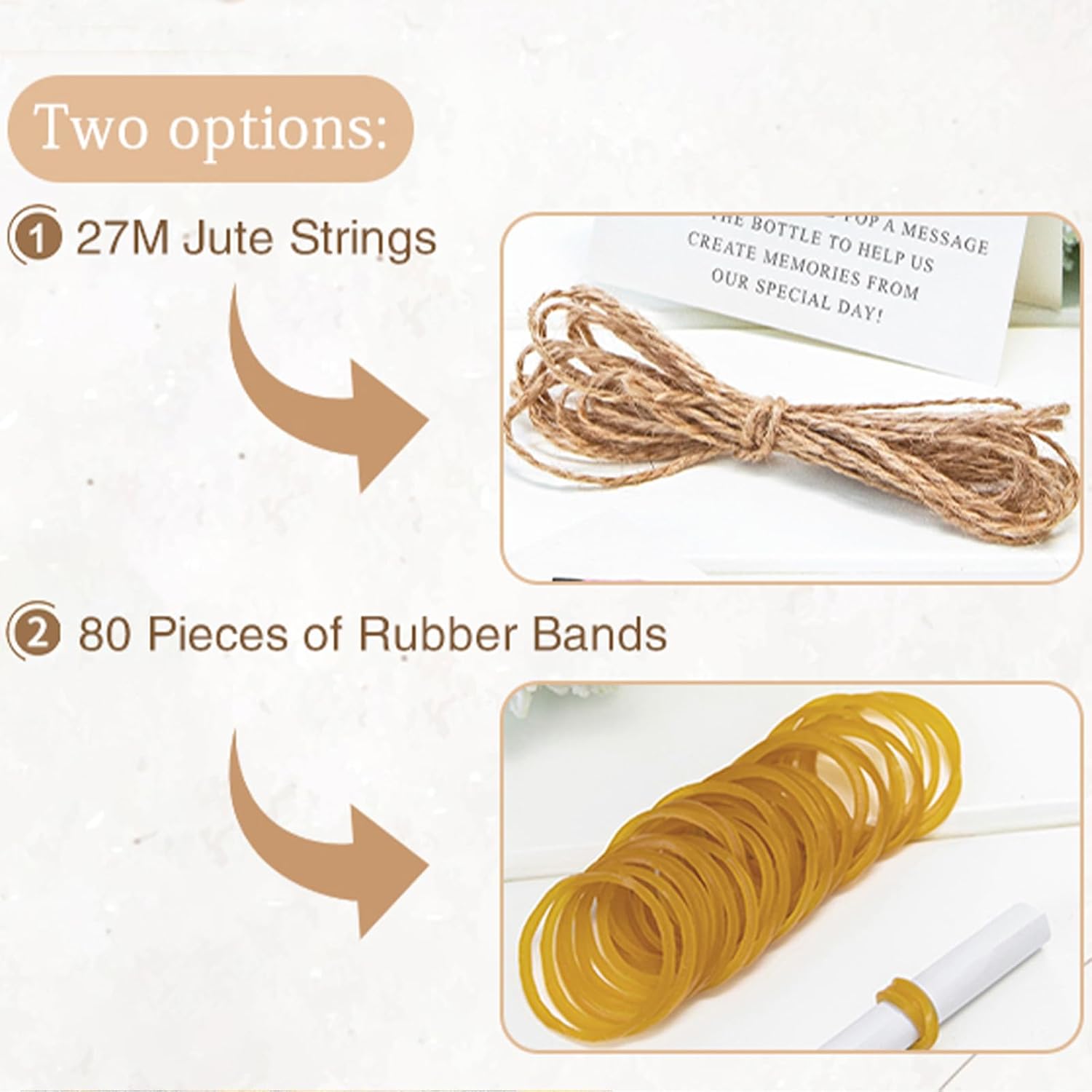 • Chic Design: Features a glass bottle with a wooden tent card, perfect for any wedding theme