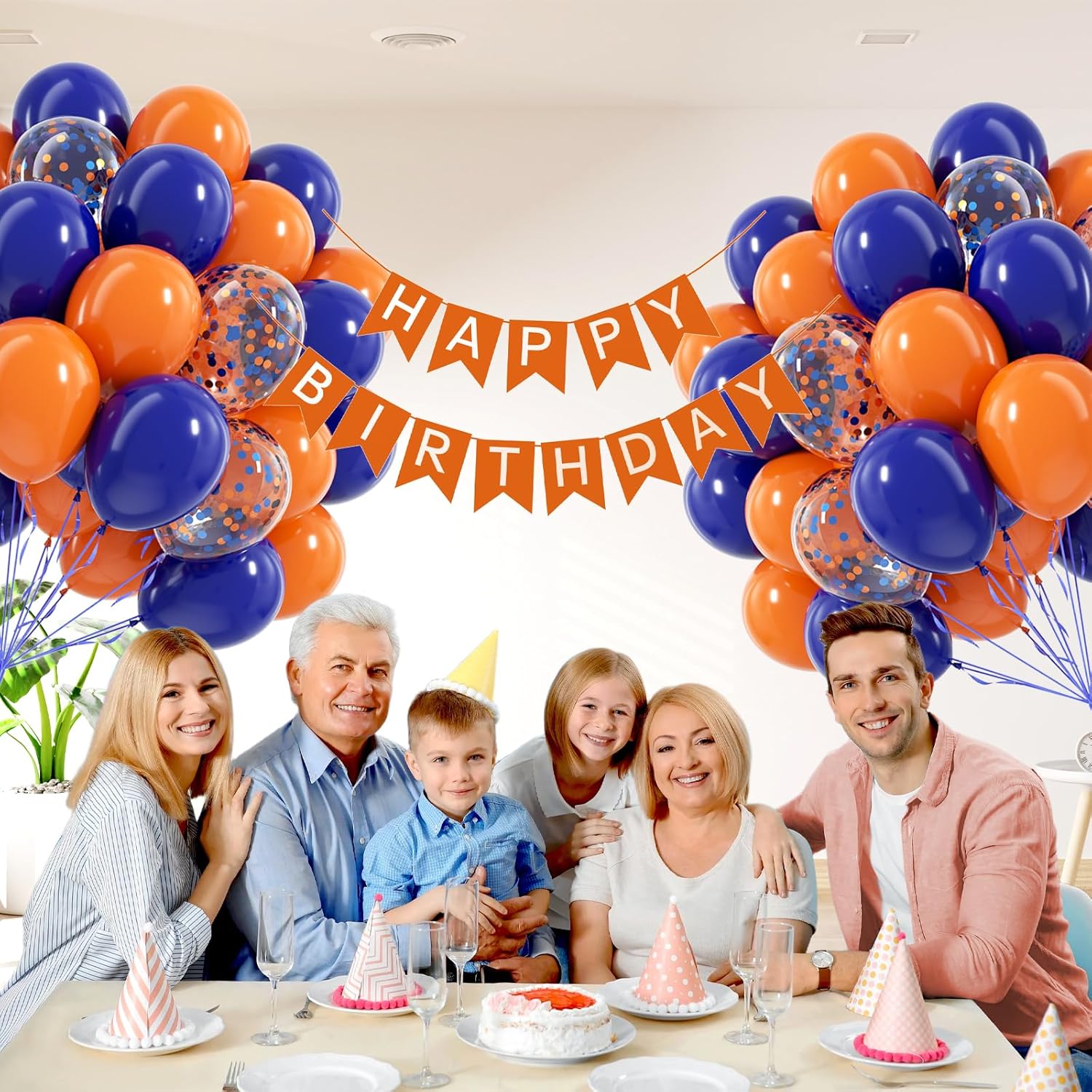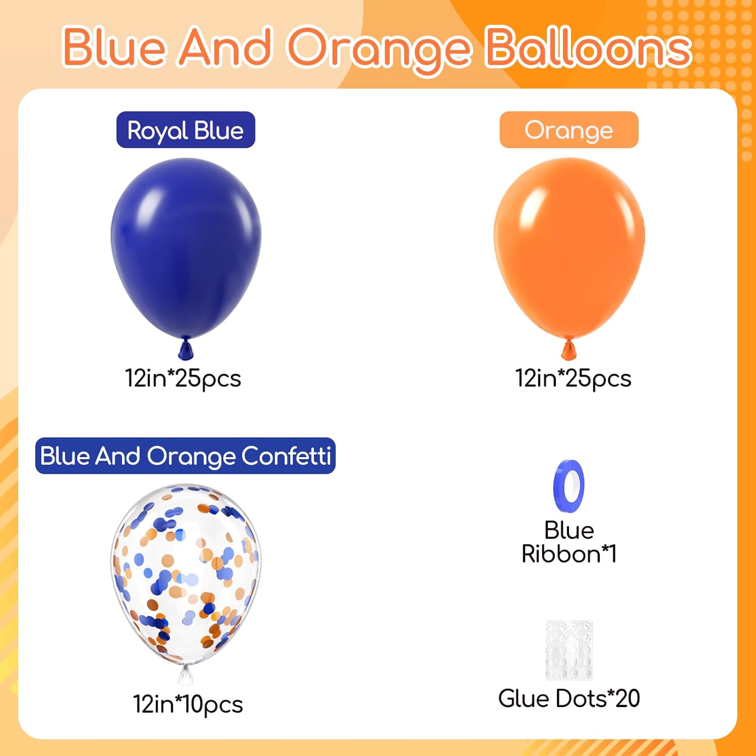 • What You Will Get: The package includes 12inch royal blue balloonsx25, 12inch orange balloonsx25, 12inch blue and orange confetti balloonsx10, glue dotsx20, blue ribbonx1