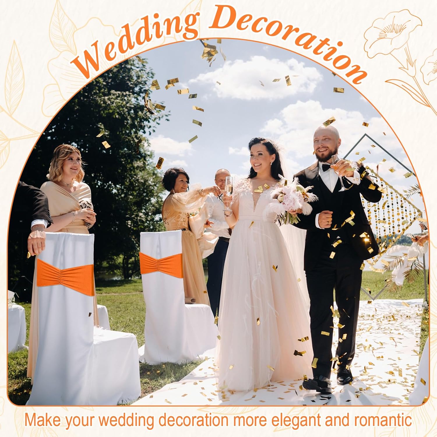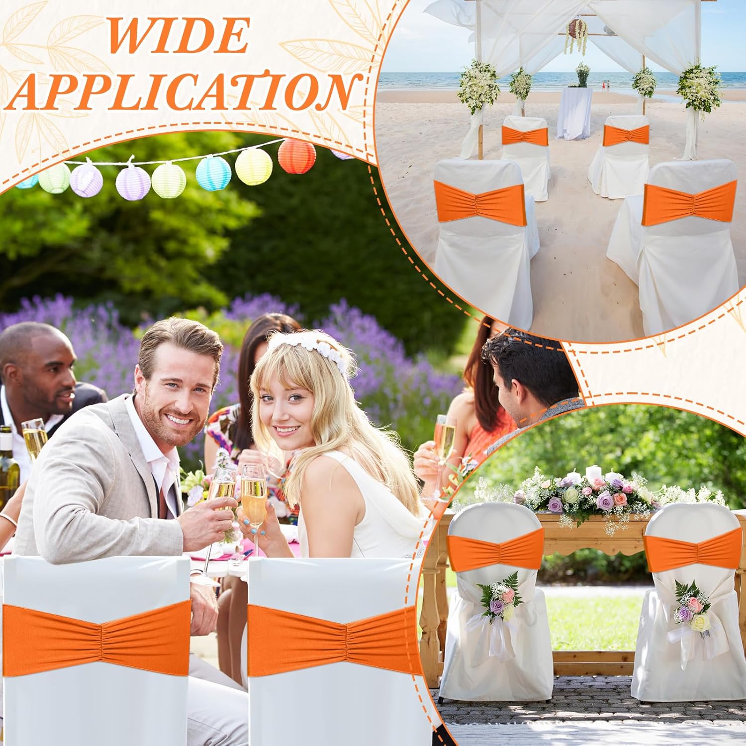 Moukeren 100 Pcs Spandex Chair Sashes Bows Bands Slider Sashes for Chair Covers Elastic Bands Ties Ribbon Decorations for Wedding Party Events Ceremony Birthday Banquet(Orange)