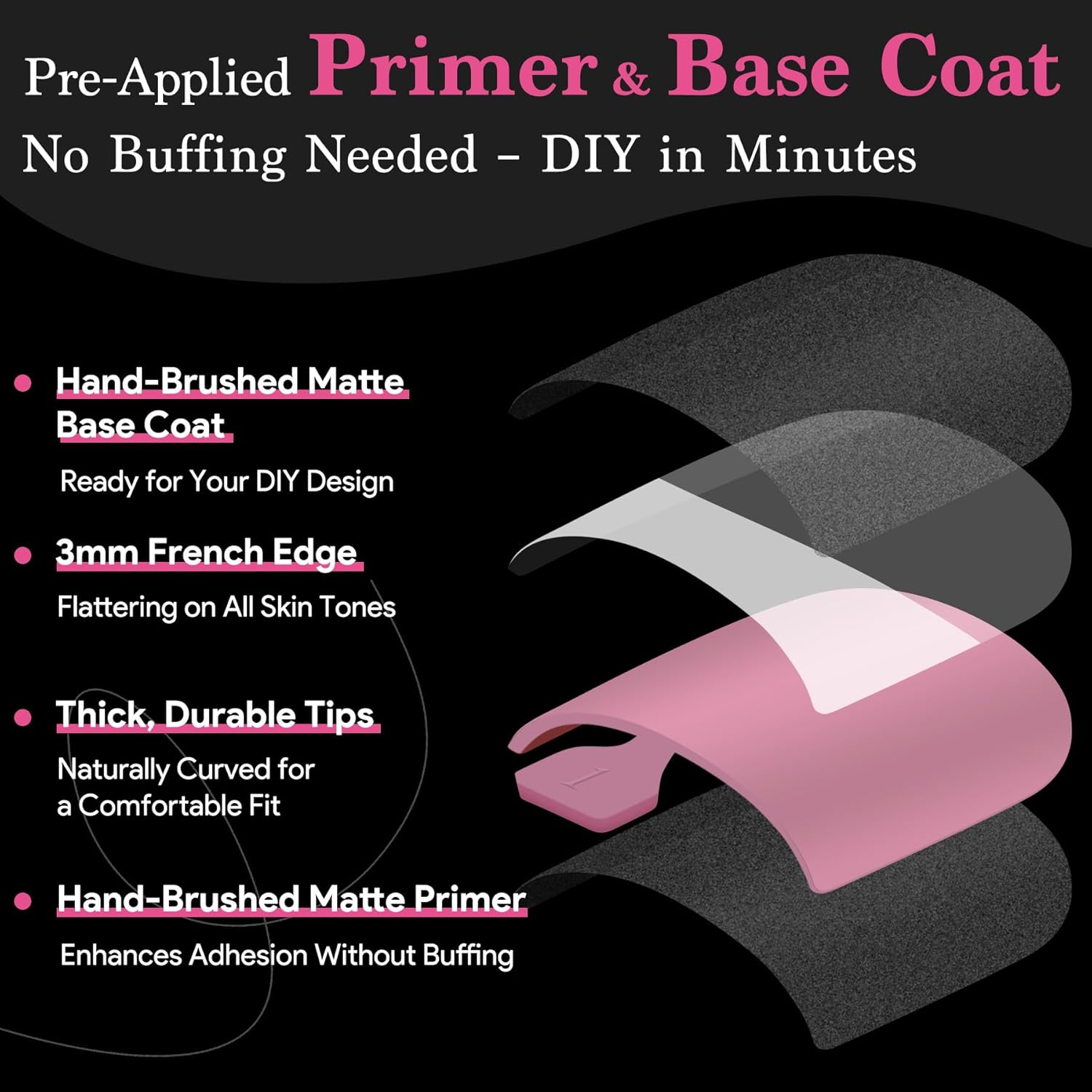 • Pre-Coated with Primer & Matte Base: Instant Art-Ready, each toenail press ons tip comes with hand-applied primer and base coat, ready for design. No buffing needed! The matte finish allows easy DIY—paint, decorate, or add rhinestones, get a salon-quality DIY pedicure in just 10 minutes, even if you're a beginner!