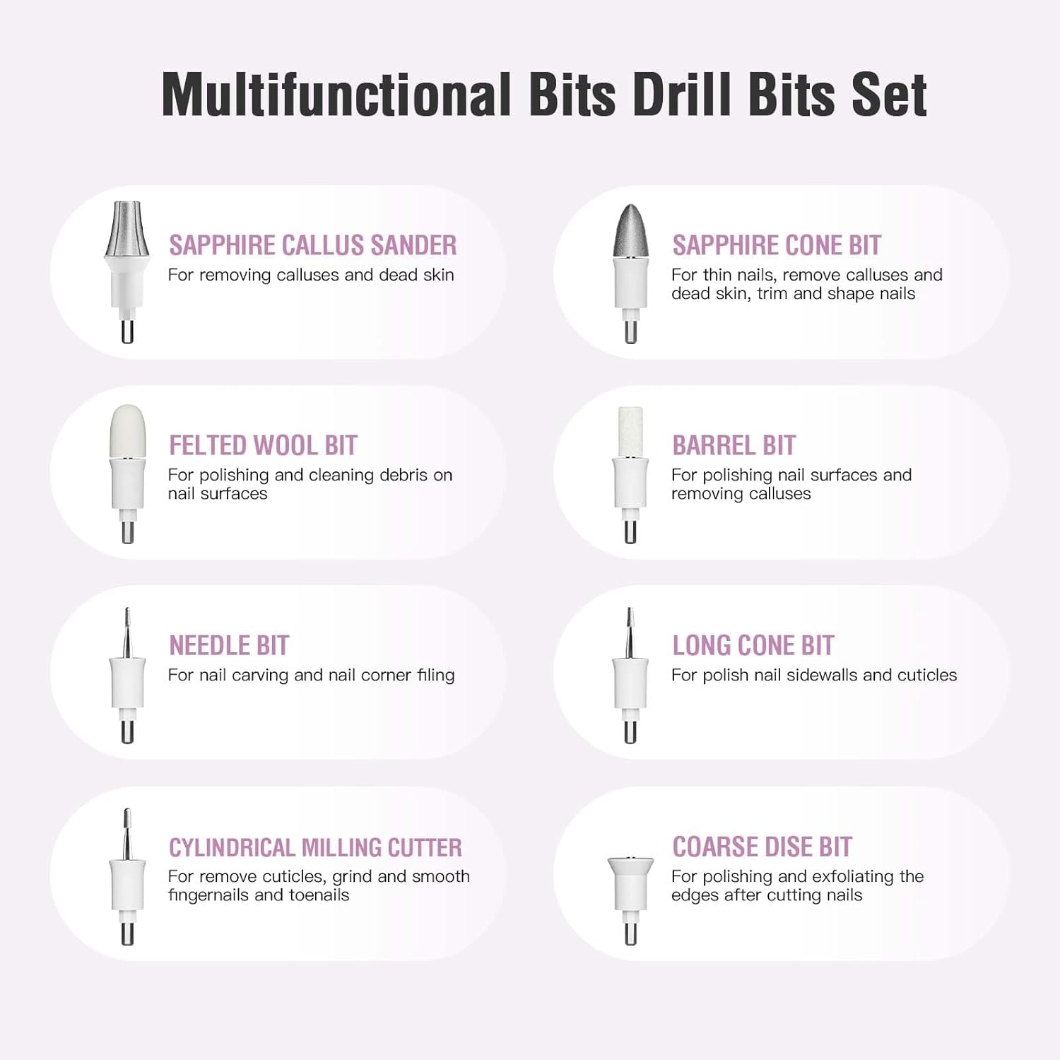• 8 Grinding Heads for Customized Care - Includes fine sand heads for daily foot polishing and coarse sand heads for removing stubborn calluses. Removable design allows easy cleaning and quick head replacement for personalized pedicures