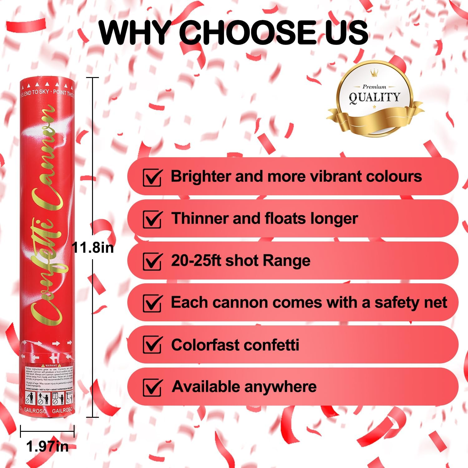 • Specifications: You will receive 6 packs of 12 inch confetti cannons. Each confetti cannon is filled with red confetti for all parties.