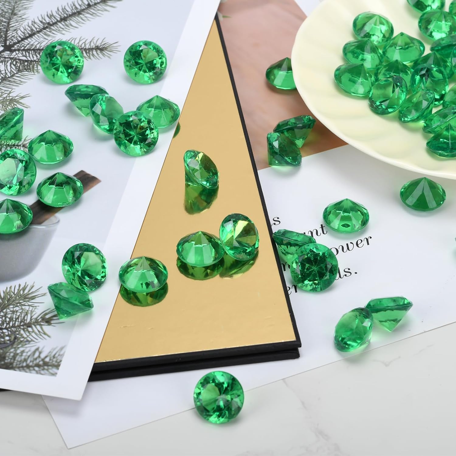 Fake Diamond Christmas Decoration, 280 pcs 20 mm Acrylic Diamond for Table Scatters Vase Fillers Green