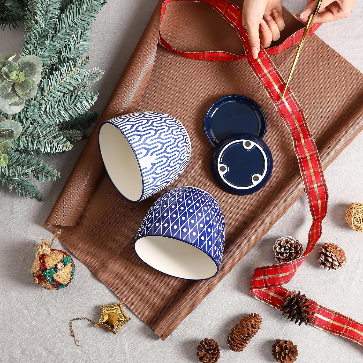 Selamica Ceramic Plant Pots, 5.6 Inch Flower Pots for Indoor Plants with Drainage Hole and Saucer,Home Decor, Set of 4, Vintage Blue