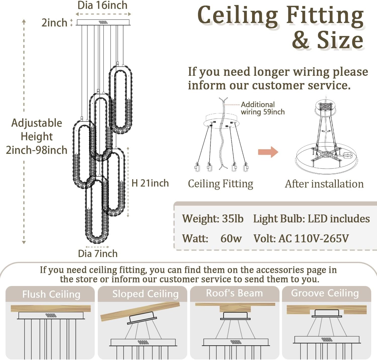 • 【Ring Chandelier Use Range】: Chandeliers can be used in living rooms, kitchens, dining rooms, stairs, entryways, foyers, hotels, villas, shops restaurants, coffee shops and more.