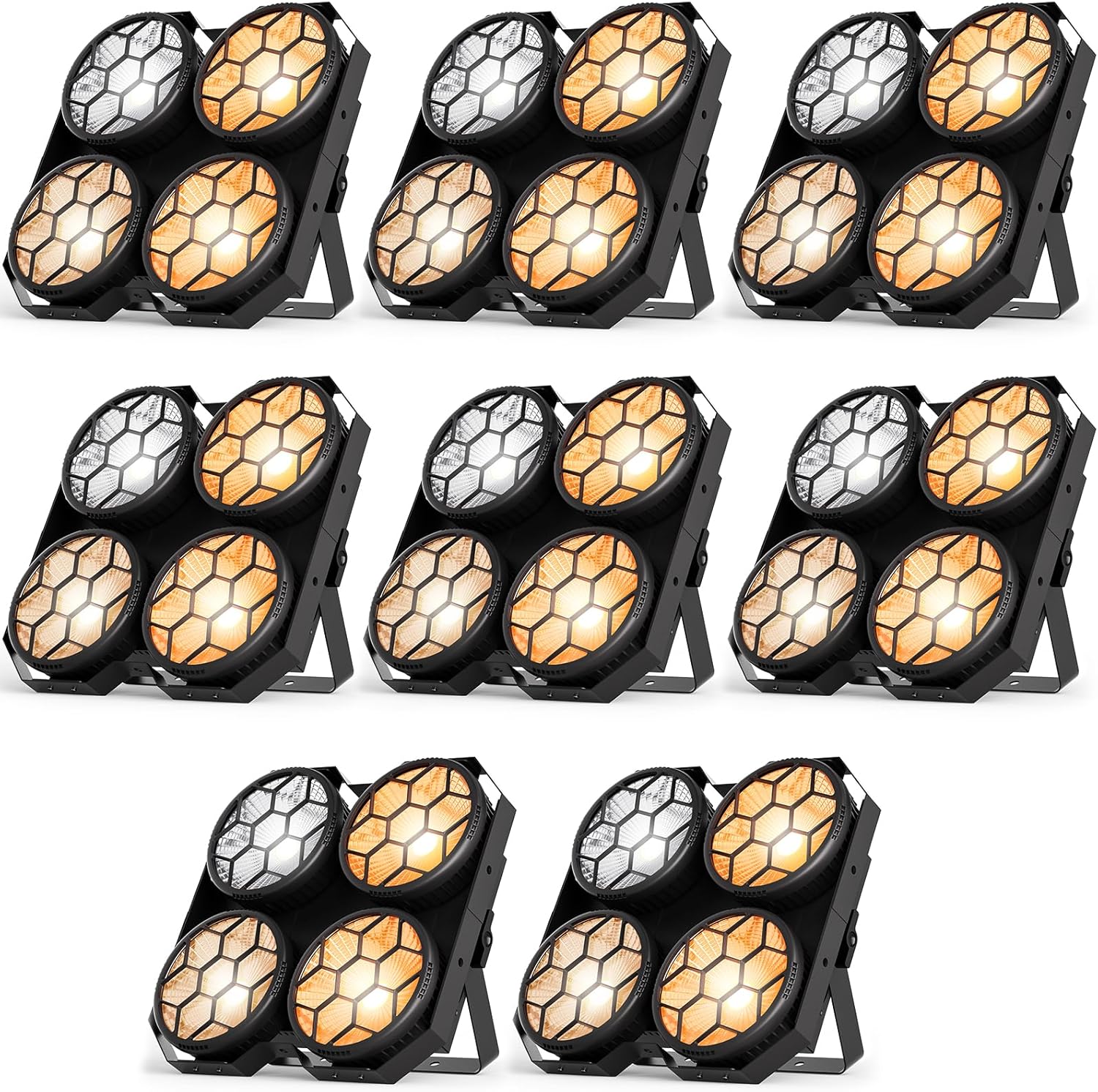 Stage Lights, 4X100W COB Spotlight LED Par Can Retro Lights, 2 in 1 Cool White & Warm White DMX512 Sound Activated Blinder Uplights for Events Parties Wedding Church Concert Studio Show Dance - 8Packs