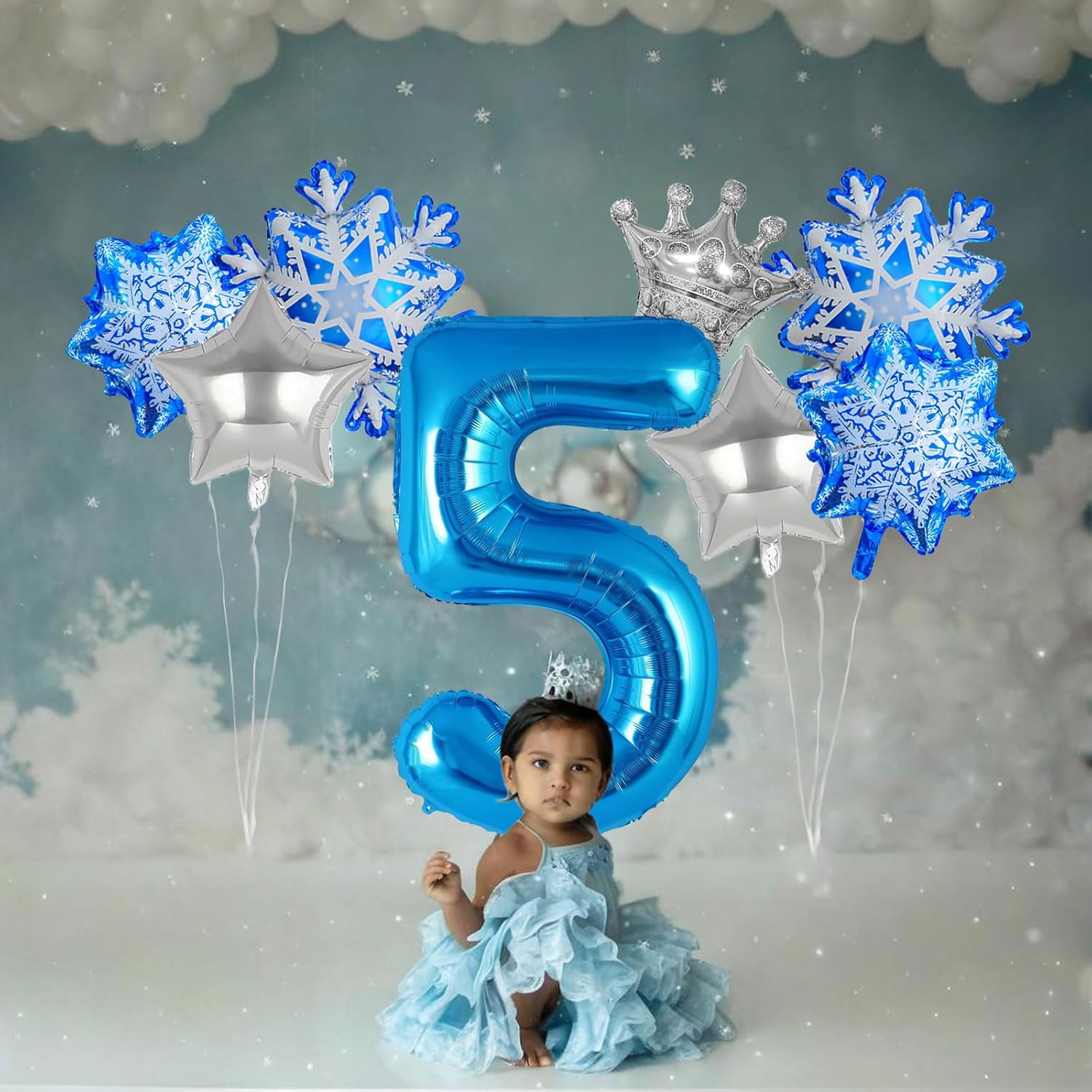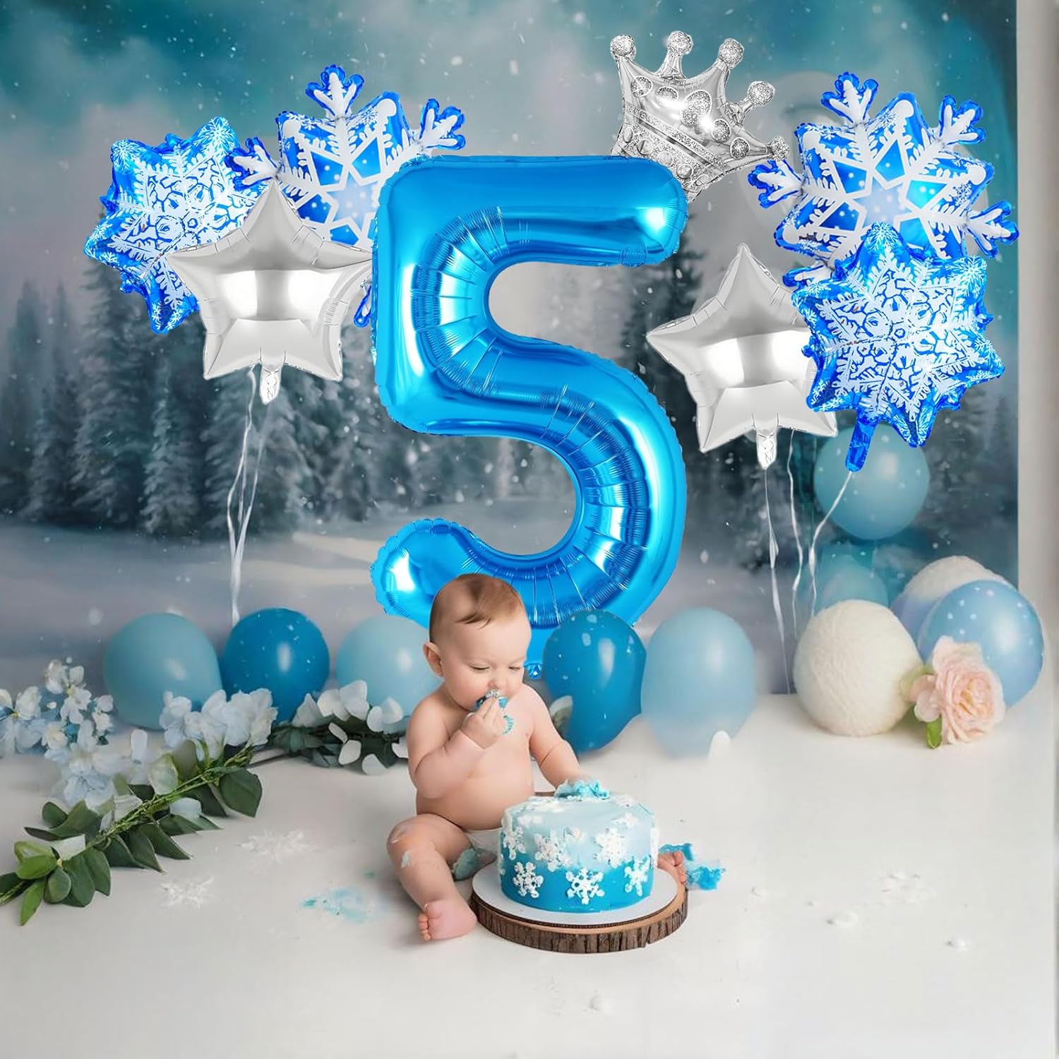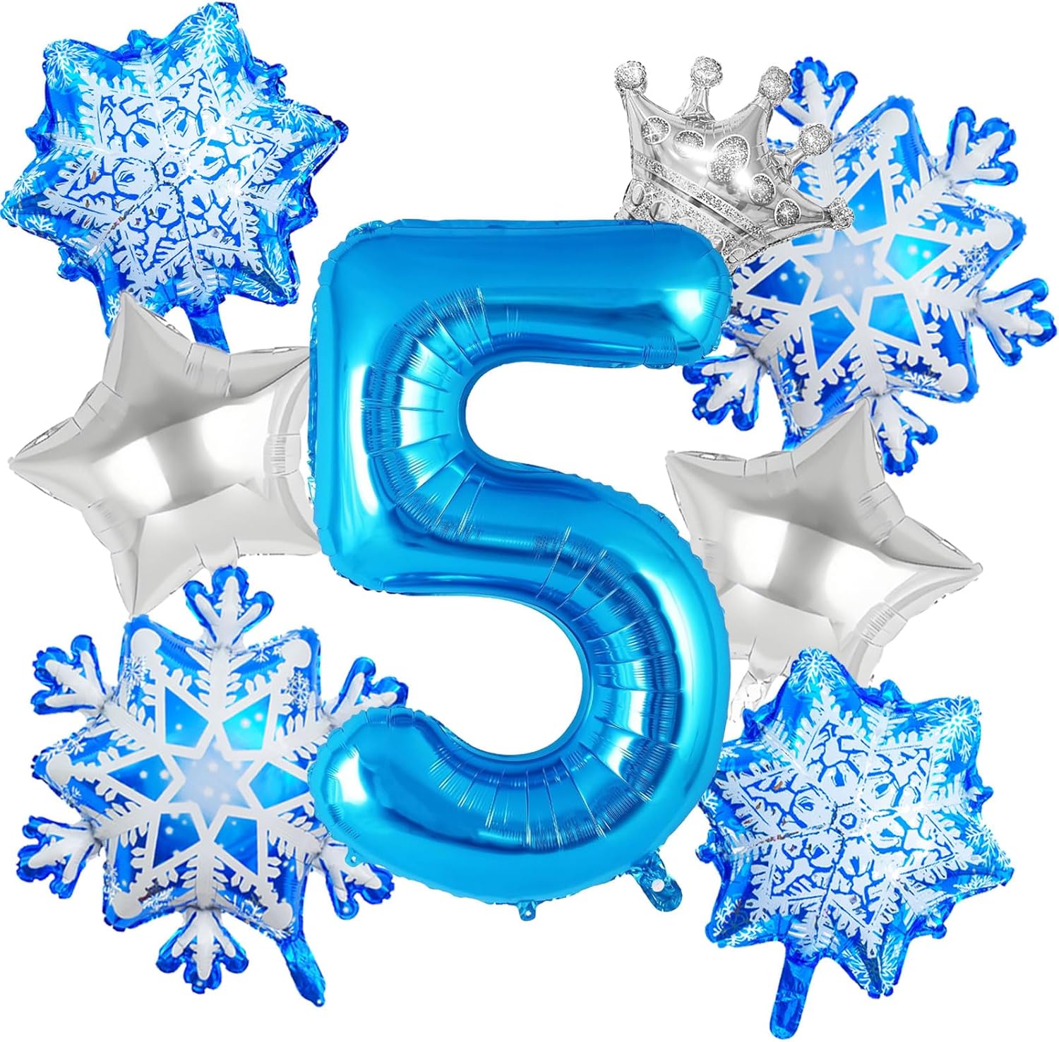 8Pcs Winter Wonderland Decorations - 40inch Blue Number 5 Balloons - snowflake balloons for Winter Wonderland Birthday Decorations