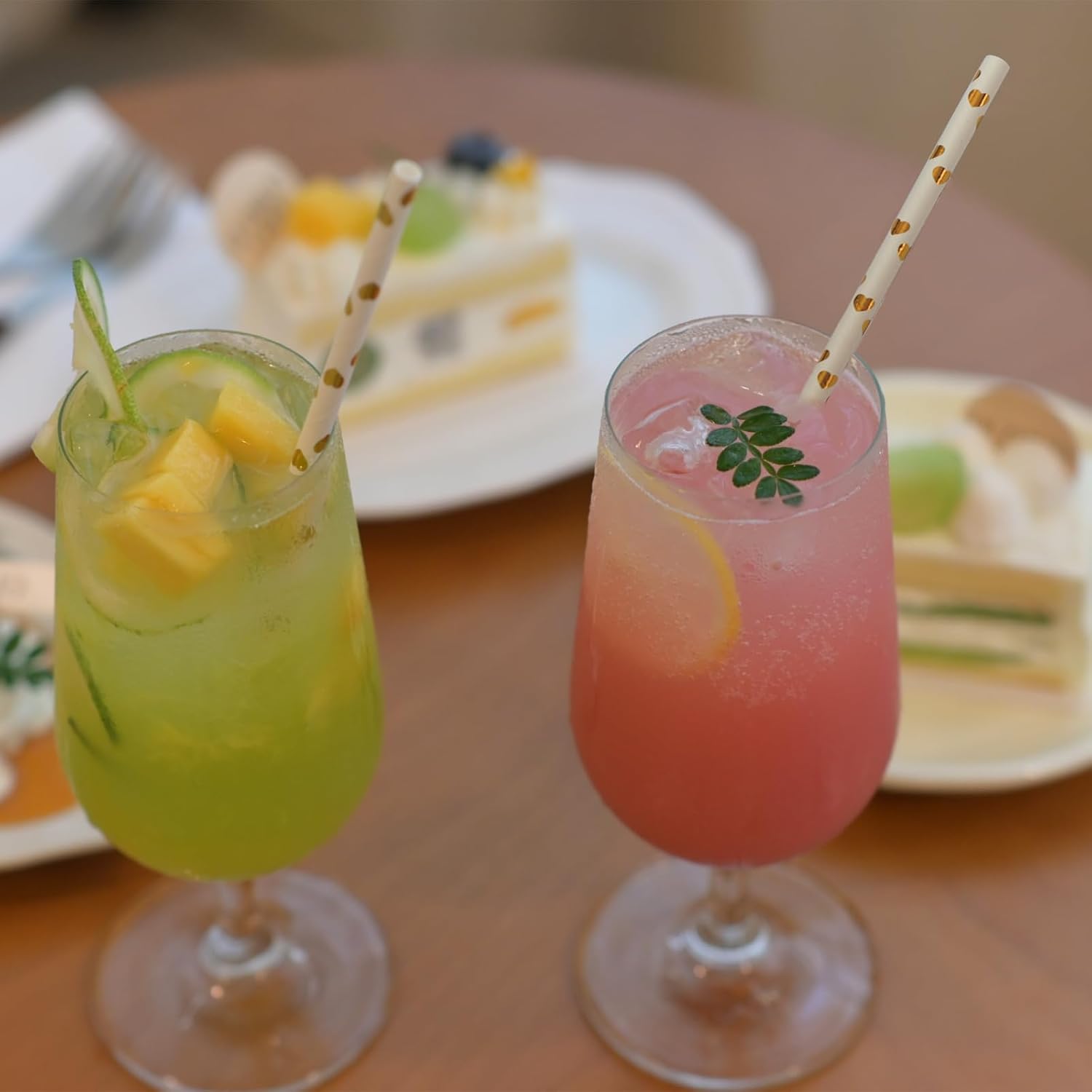 • Eco-Chic Aesthetic:Sleek white paper straws embellished with luxe gold heart patterns – a sustainable statement that elevates any drink presentation