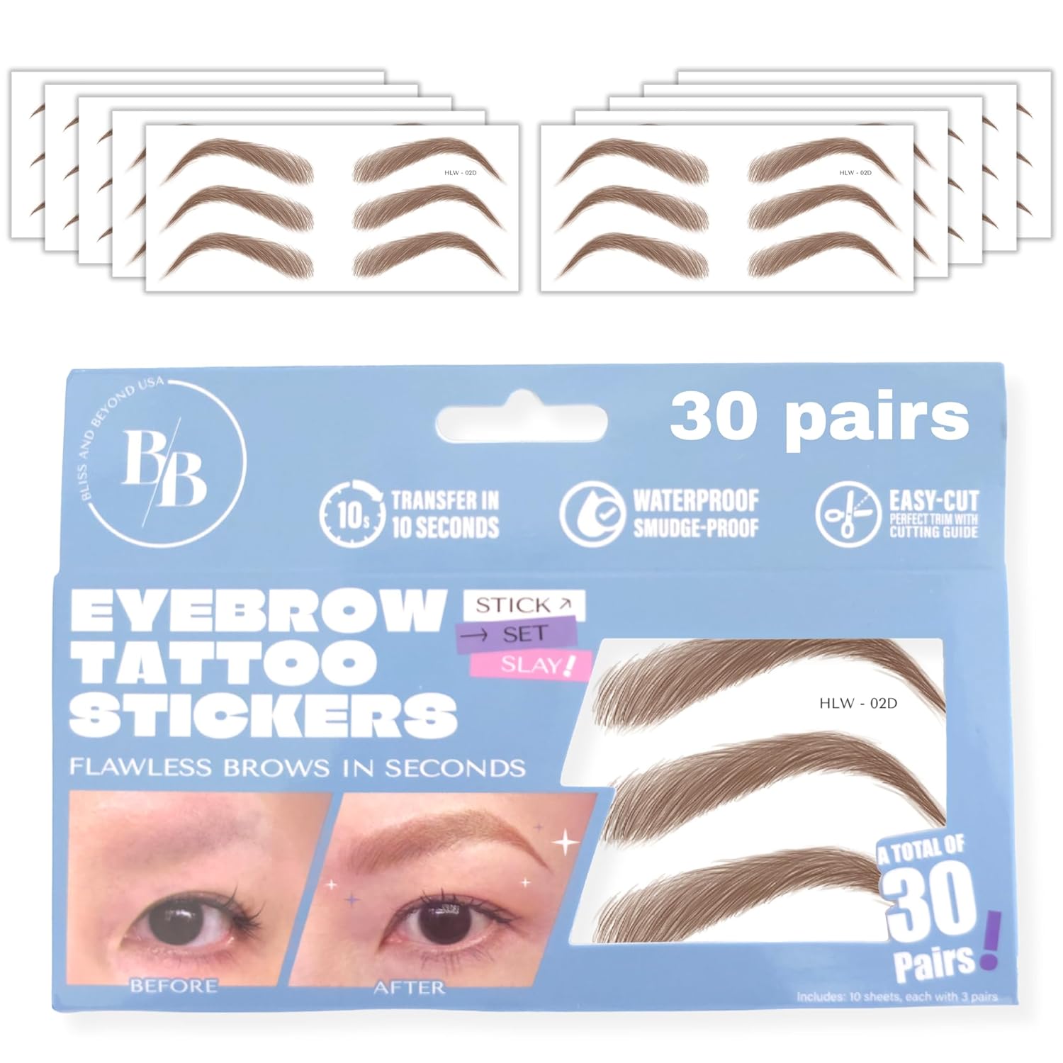 • Trim Guide on Back: Each sticker has a printed guideline on the back to help you cut evenly and match your brow shape.