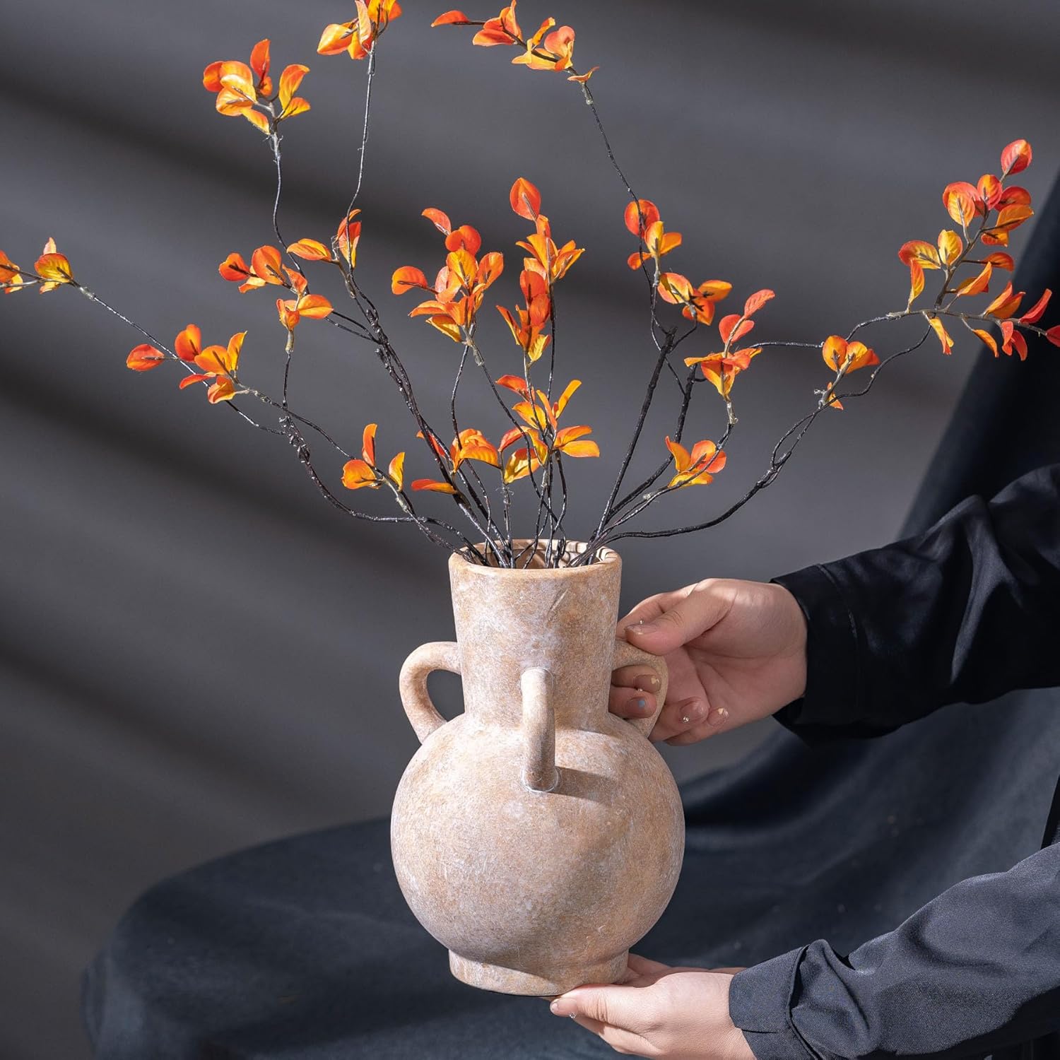 • Ergonomic Triple-Handle Design for Secure Stabilityβ€Œ: Designed for practicality, this durable pottery vase features three reinforced handles for easy lifting and placement as rustic table centerpieces or living room accents. The 3.35-inch wide mouth accommodates tulips, dried blooms, or standalone dΓ©cor, while the textured finish and weighted flat base prevent slipping.