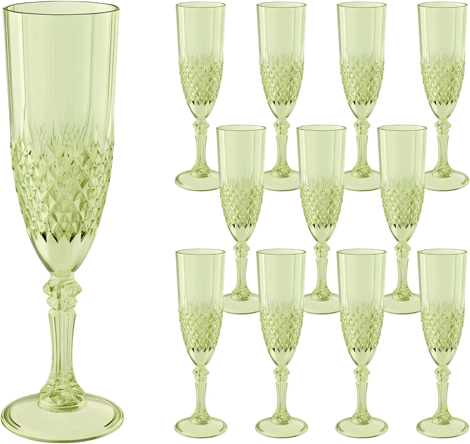 • Charming Set: Champagne flutes set include 12 retro-style green champagne plastic wine glasses, providing ample quantity to meet your daily use and replacement needs. A suitable champagne cup is the icing on the cake. Plastic wine glasses not only carry the wine, but also carries the laughter and blessings