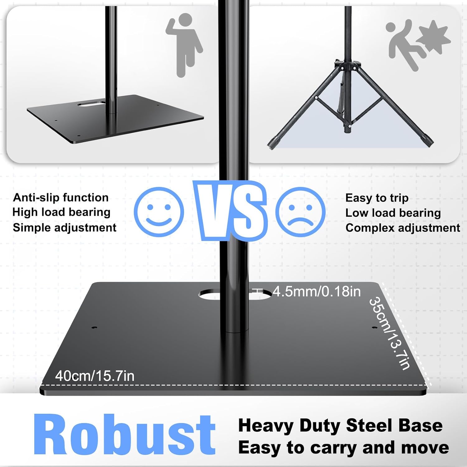 • Sturdy and Strong Construction: This heavy-duty photo backdrop stand bar is made by premium-grade aluminum alloy, designed to withstand rigors professional use, can hole up 33LB, each metal base weighs 10 LB can preventing any wobbling or tipping during use