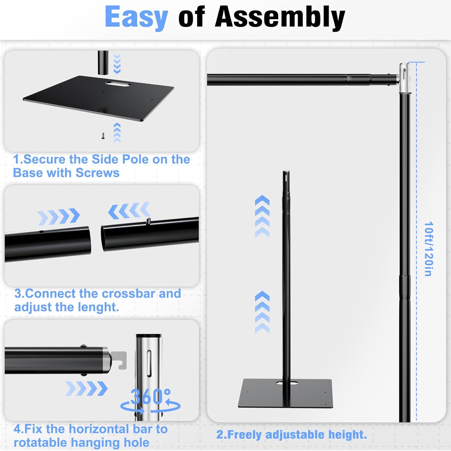 • Easy Setup and Portability: This backdrop stand can be set up and taken down in minutes. The included carrying case allows for easy transportation and storage, it is space-saving and convenient.Kindly Note: Please watch the installation video before starting install.Note: To avoid hanging holes crack, please remove the top rod before adjusting the hanging holes at both ends.