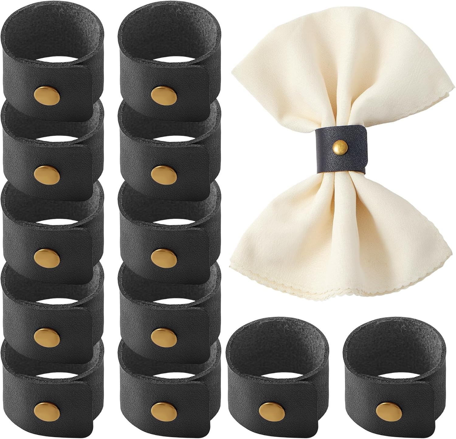 APTWOW Leather Napkin Rings Set of 12 - Fall Thanksgiving Napkin Holder, Black Halloween Vintage Farmhouse Napkin Rings Bulk for Wedding Party Birthday Banquet Table Decor and Daily Use