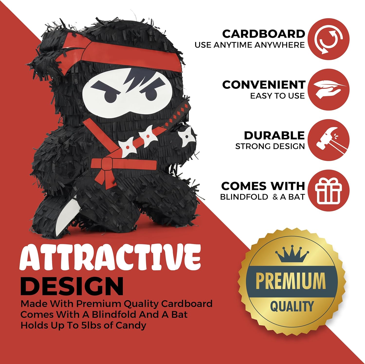 Ninja Pinatas Bundle with a Blindfold and Bat (16.5x12.6x4 Inches), Perfect for Birthday Parties, Theme Parties for boys, Decorations