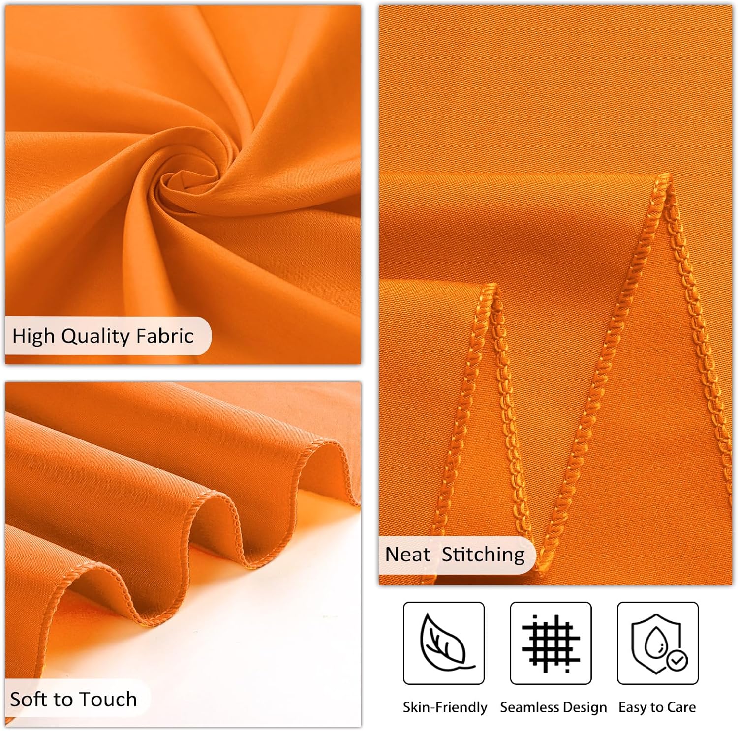 • Excellent Workmanship: Our tablecloths rectangular are designed with folded borders and precise stitching to ensure an elegant look and no loose threads, using non-fading dyes to keep orange tablecloths for rectangle tables color vibrant and true to life. It also has hemmed edges and seamless construction, which make the orange table cloths wrinkle resistant, and you can iron if needed.