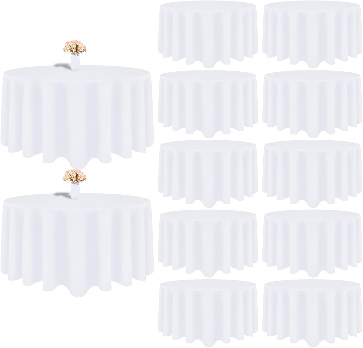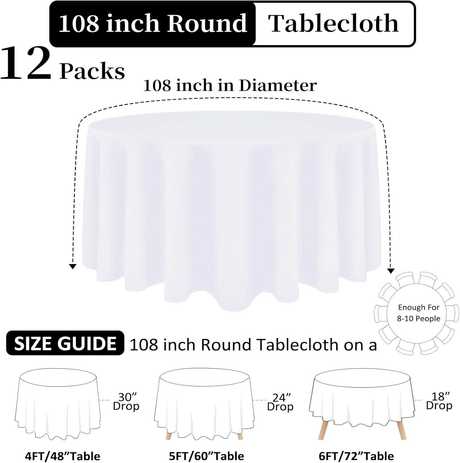 12 Pack White Round Tablecloth 108 Inch White Table Cloth Stain and Wrinkle Resistant Round White Tablecloths Reusable and Washable Polyester Fabric Table Covers for Buffet Wedding Party and Banquet