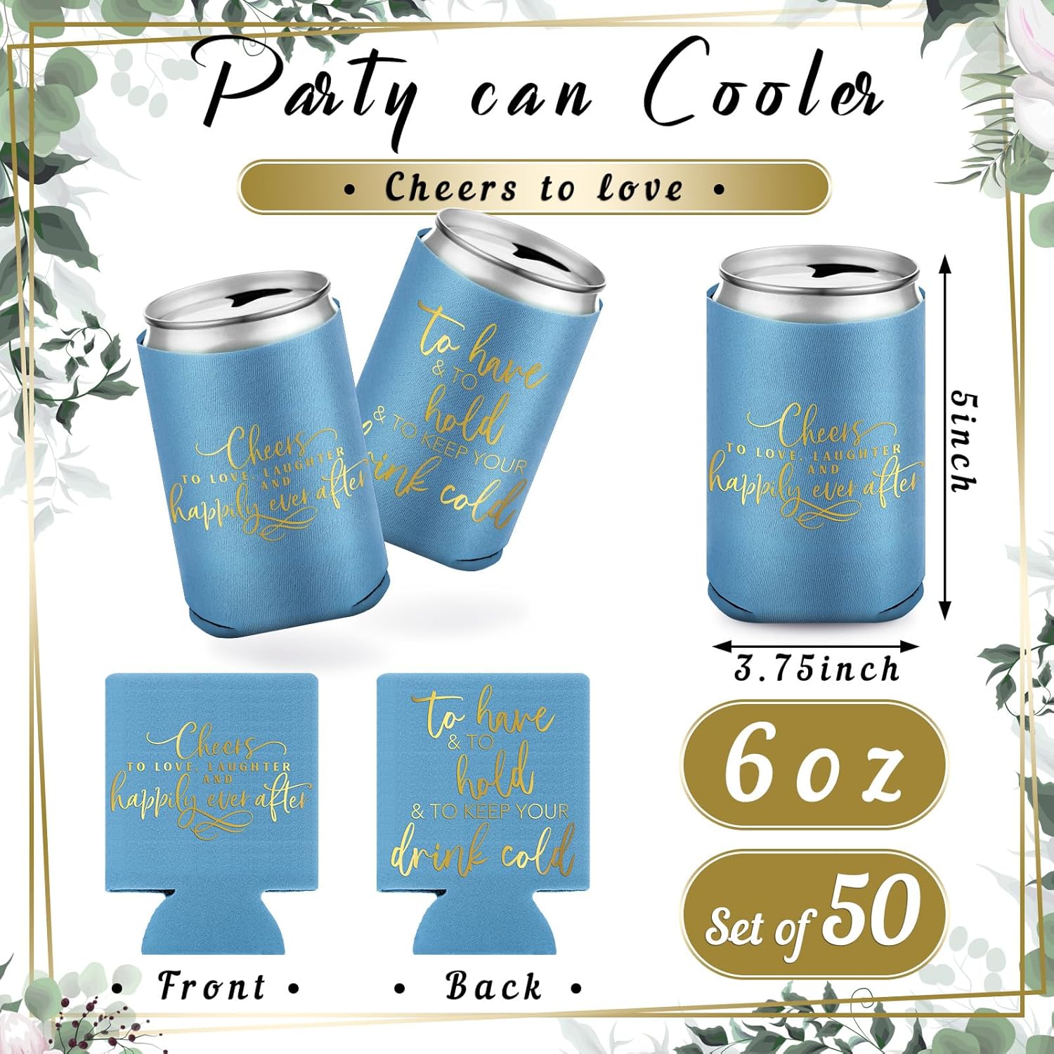 • Satisfying Party Package: our huge package containing 50 pieces of wedding can cooler decorations; Make every drink a celebration with our haze blue and white can coolers; They are suited to uplift the atmosphere at weddings, bridal showers, and bachelorette parties