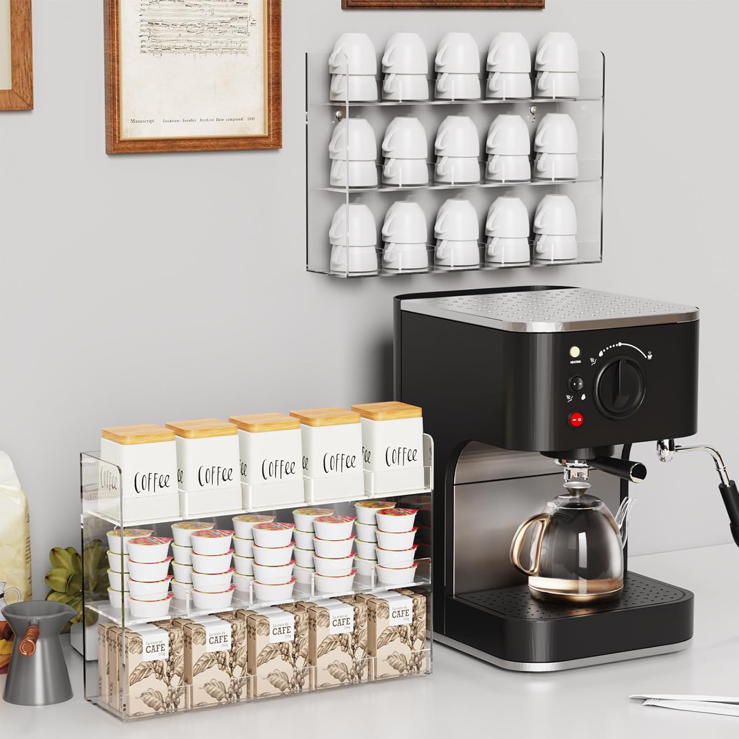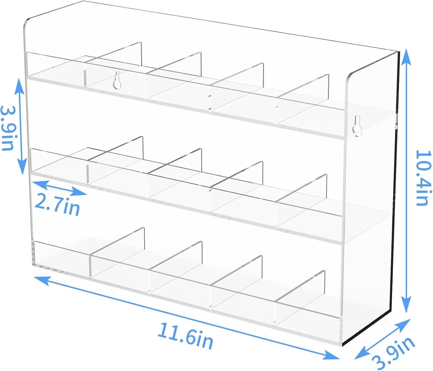 Acrylic Tea Bag Organizer, 3 Layers Tea Bag Holder for Tea Packets, No Assembly Required, Wall Mount Display Tea Caddy for Countertop or Cabinet, 15 Slots