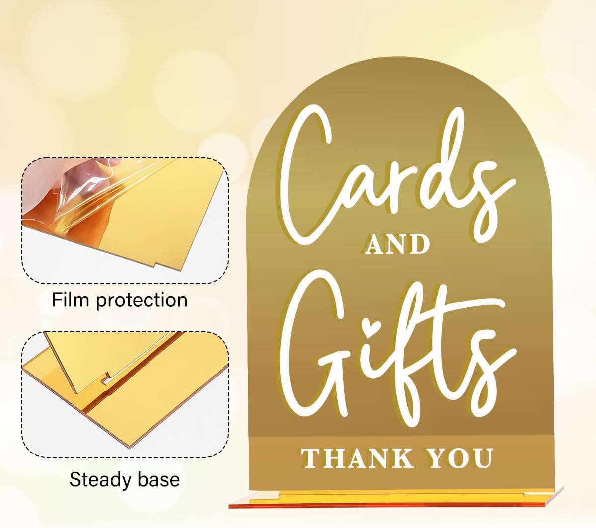 Acrylic Wedding Sign, Bridal Shower Decorations, Cards and Gifts Sign for Ceremony, Modern Font Table Signs, Gold Mirror Arched Acrylic Tabletop Signs for Wedding Reception and Event Party