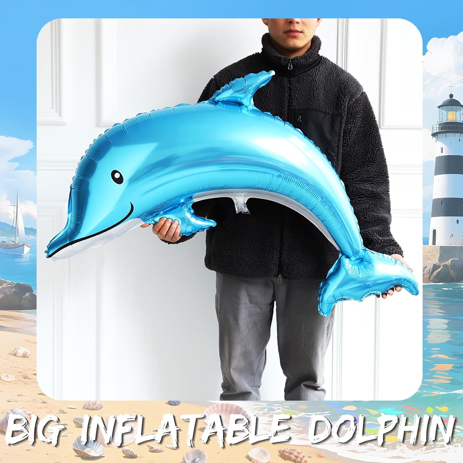 • 154Pcs Vibrant Balloon Arch Kit - Contains 3pcs Iconic Ocean Nautical vibes foil balloons , Uniquely added Inflatable big dolphin , Narwhal Whale , Tropical Fish foil balloons ; 149 pcs vibrant Nautical Theme Colors latex balloons ; Especially added useful glue point and arch strip , to help you build wonderful balloon arch