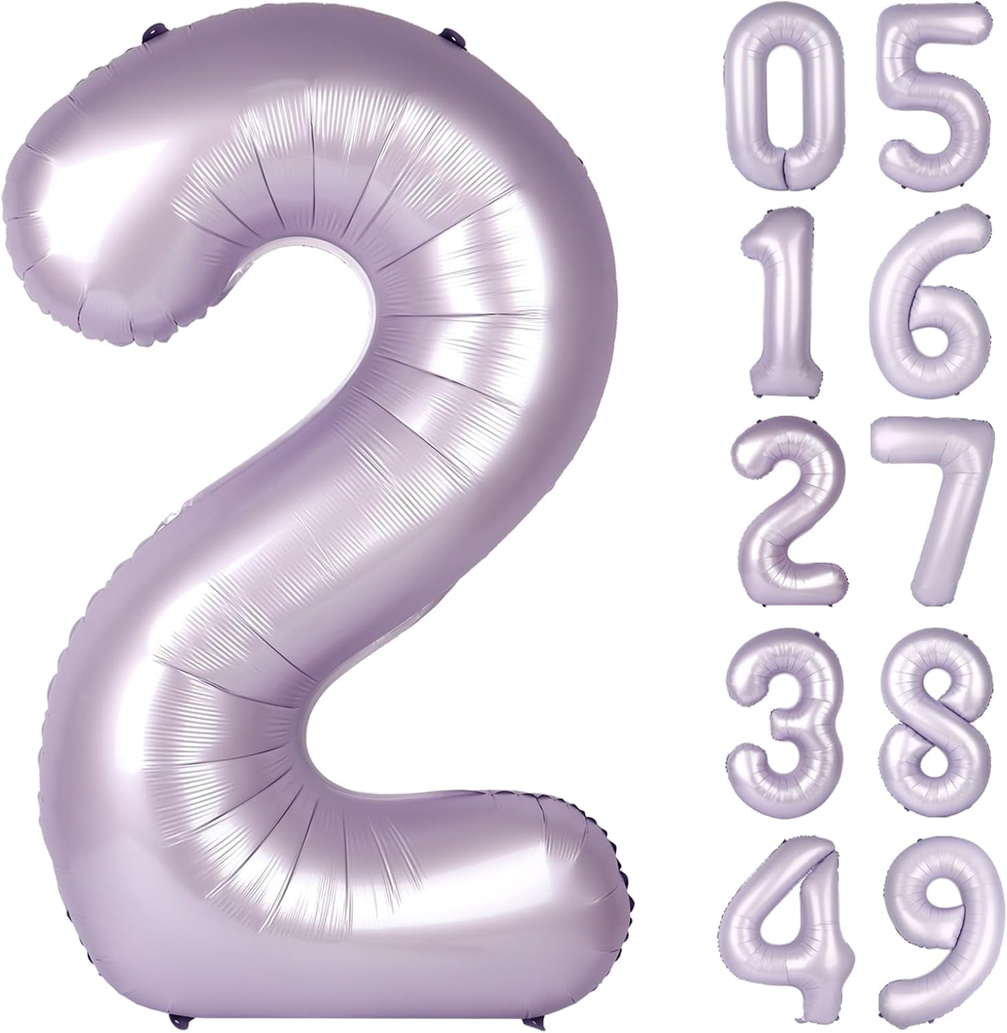Lilac 40 Inch Big Number Balloon Birthday Decoration, Number 2 Helium Balloon 12 20 22 23 24 26 2026 New Years Celebration, Boy Girl Baby Anniversary Party Graduations Supplies Decorations