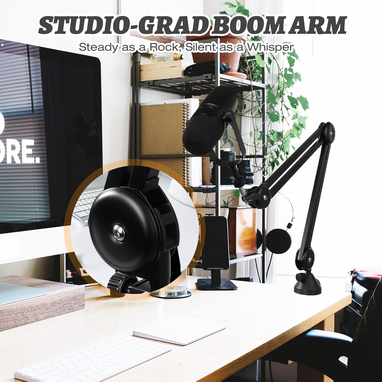 • Built to Last โ€” Heavy-Duty Mic Boom Arm for Creators This all-metal microphone boom arm is engineered for durability and stability. Reinforced screws and premium materials keep your mic stand rock-solid โ€” no shaking, no wobbling. Perfect desk microphone boom arm for gaming, podcasting, streaming, or studio recording. (Mic not included)