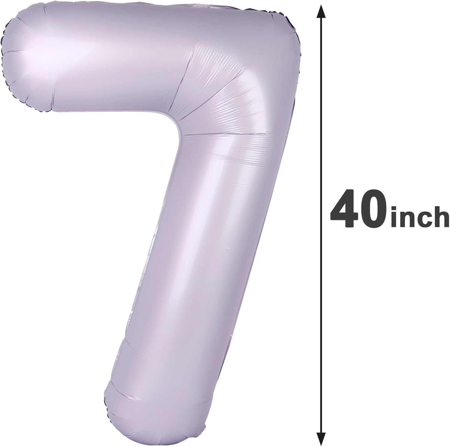Lavender Number 7 Birthday Balloon 40 Inch, Digital Balloons for 7 17 27 70 77 Party Celebration Decorations Supplies, Lilac Mylar Foil Numbers Balloon for Seven Wedding Anniversary