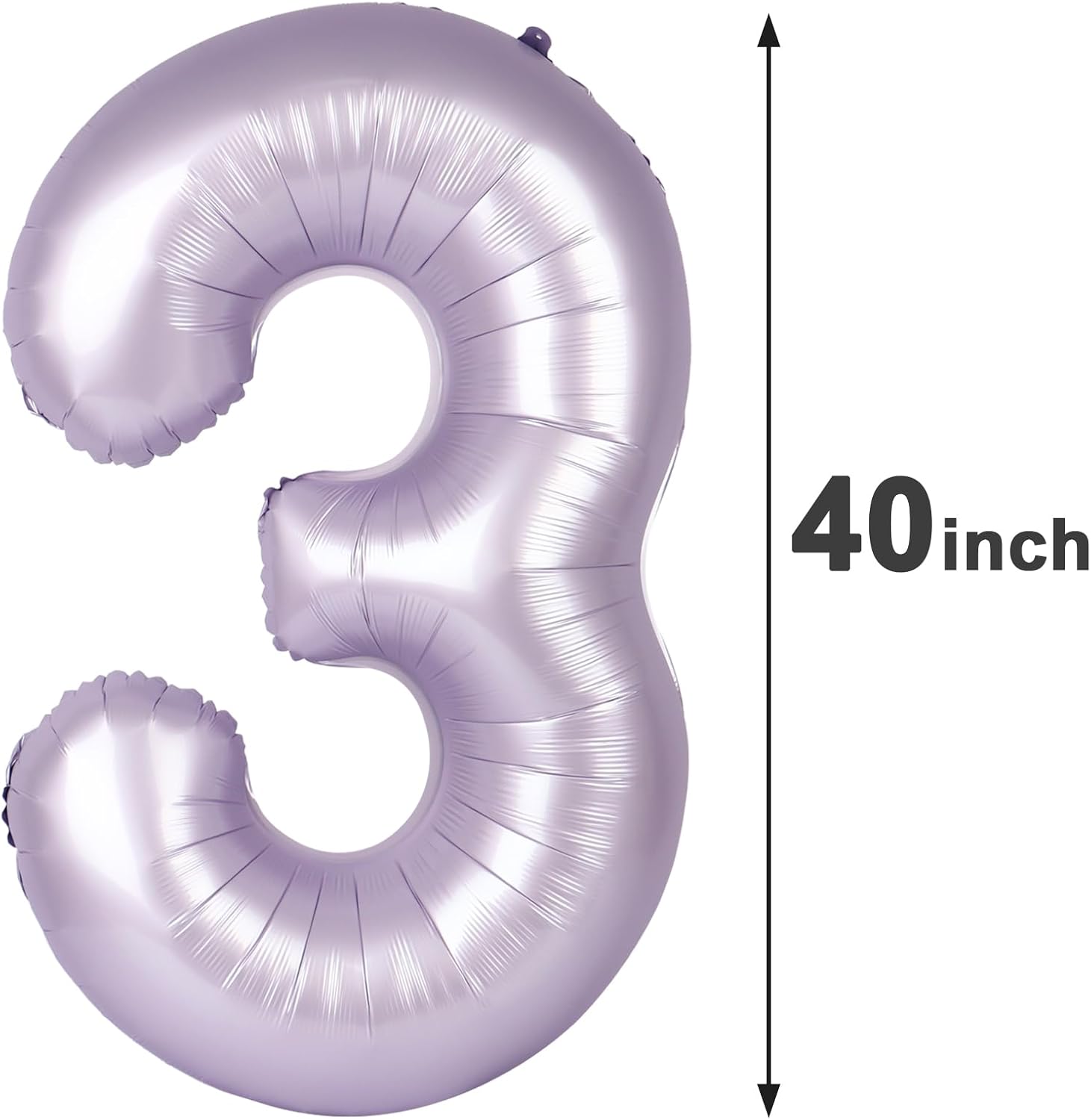 40 Inch Lilac 3 Large Number Balloon, 3 13 23 30 33 36 Lavender Birthday Party Decorations, Number Three Foil Balloons for Anniversary Party Graduations Celebration Supplies