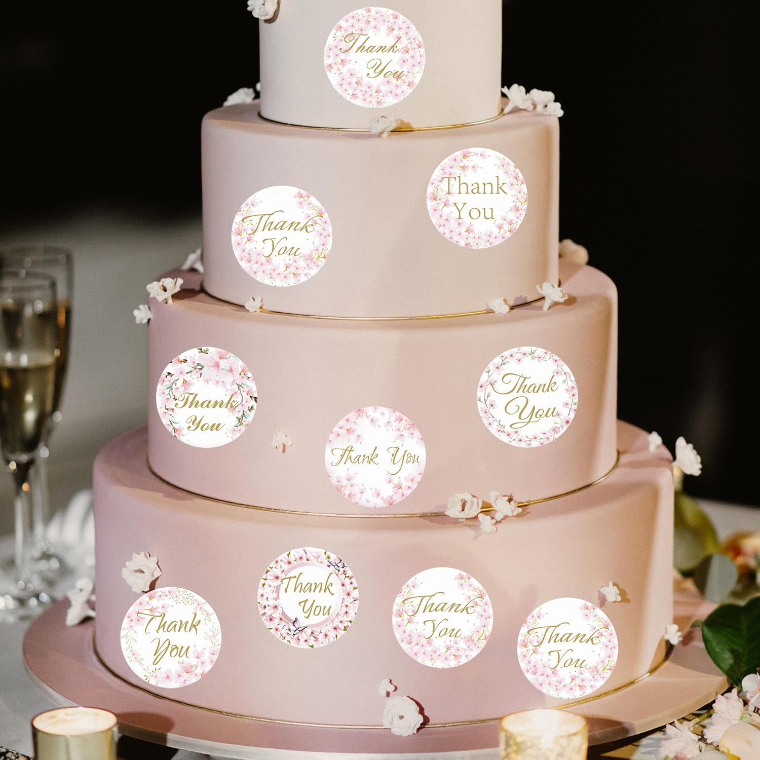 36PCS Edible Cherry Blossoms Thank You Cupcake Toppers Pink Edible Cherry Flowers Cake Decor Wafer Paper Thank You Cupcake Topper for Flowers Theme Baby Shower Birthday Party Decor Supplies
