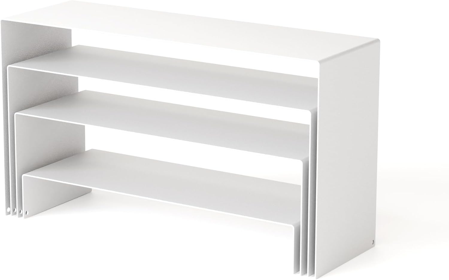 • 【Materials and Size】This black matte metal 8 pieces display stand comes in four sizes, namely 7.8*3*1.2 inches, 8.2*3*2.7 inches, 8.6*3*3.9 inches, 9*3*5.1 inches. Two sets of four sizes of displays stand,simply place the riser on the table, arrange your items, and display them, and you can turn any space into a place to show your personal style and appreciation of art and craftsmanship.
