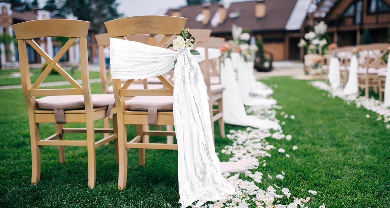 • 【Delicate Craftsmanship】White cheesecloth chair sashes adopt unique pleated workmanship, and the overall appearance is simple and elegant, creating an elegant and romantic atmosphere easily. The edges are carefully stitched to keep a perfect flowing condition, will not get broken or loose easily, can serve you for a long time