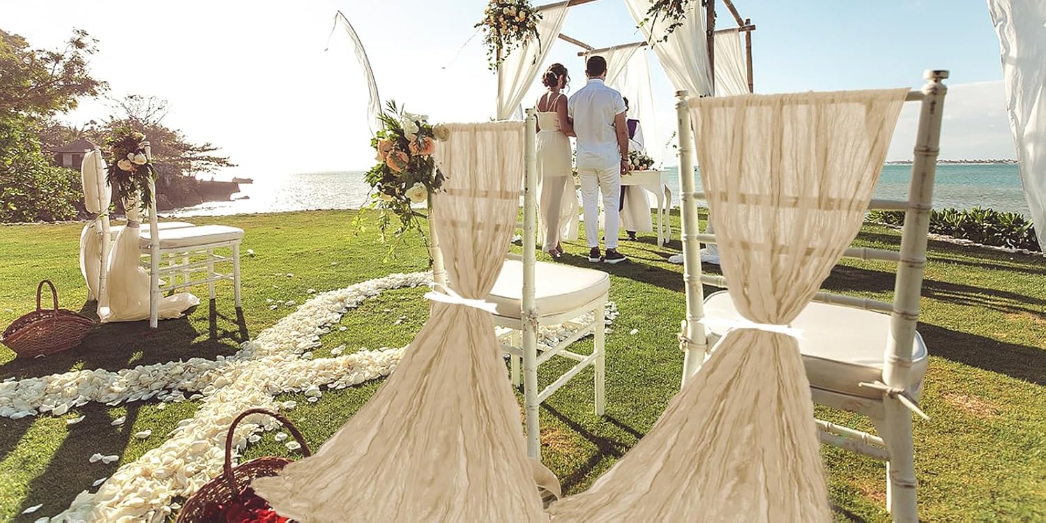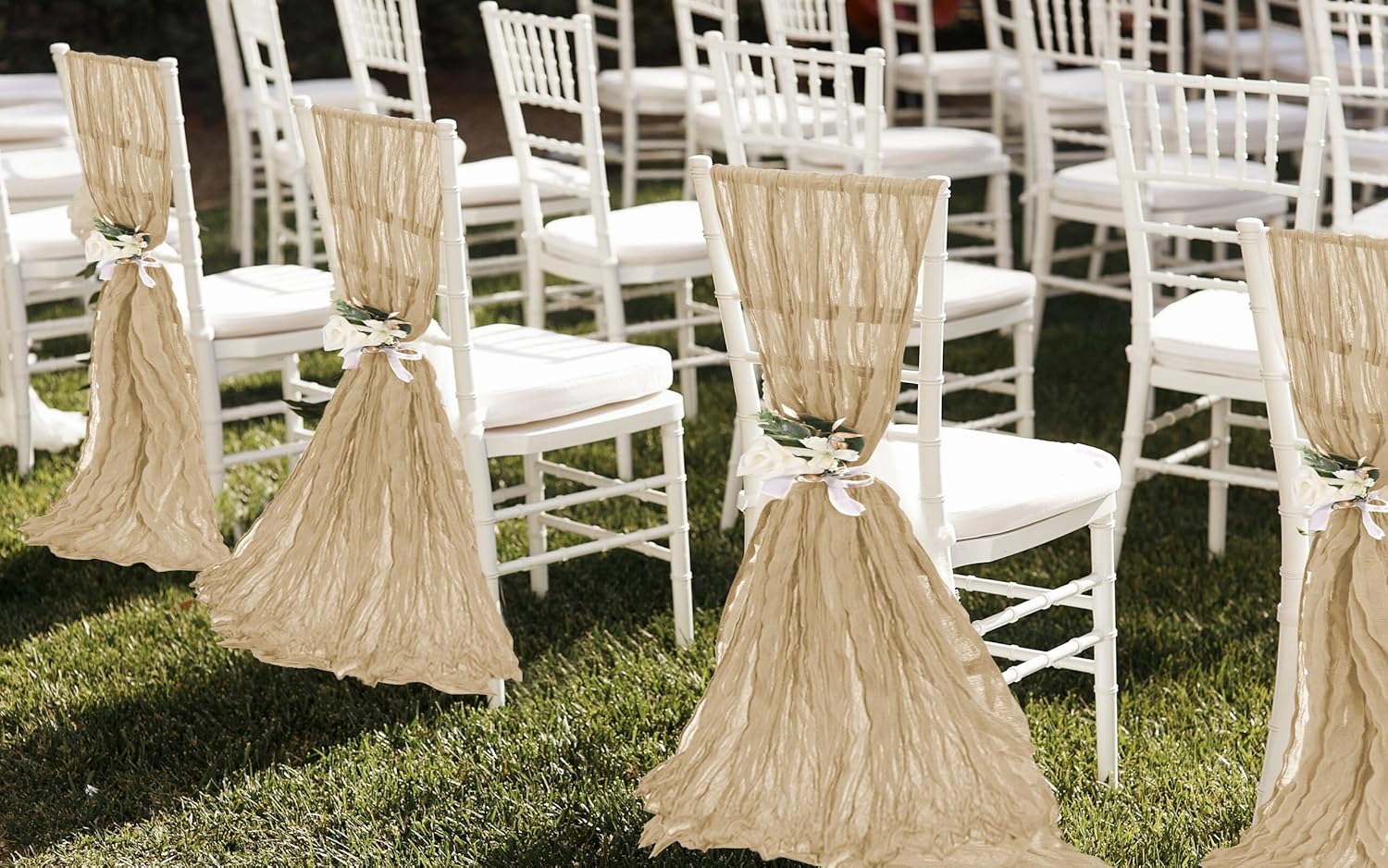 • 【Delicate Craftsmanship】Beige cheesecloth chair sashes adopt unique pleated workmanship, and the overall appearance is simple and elegant, creating an elegant and romantic atmosphere easily. The edges are carefully stitched to keep a perfect flowing condition, will not get broken or loose easily, can serve you for a long time